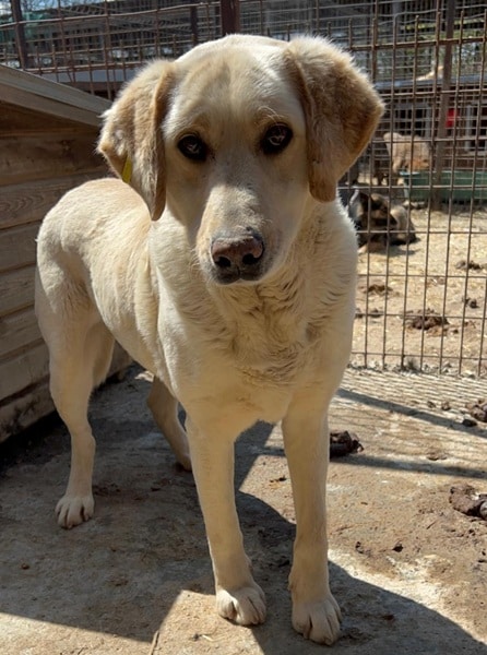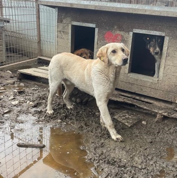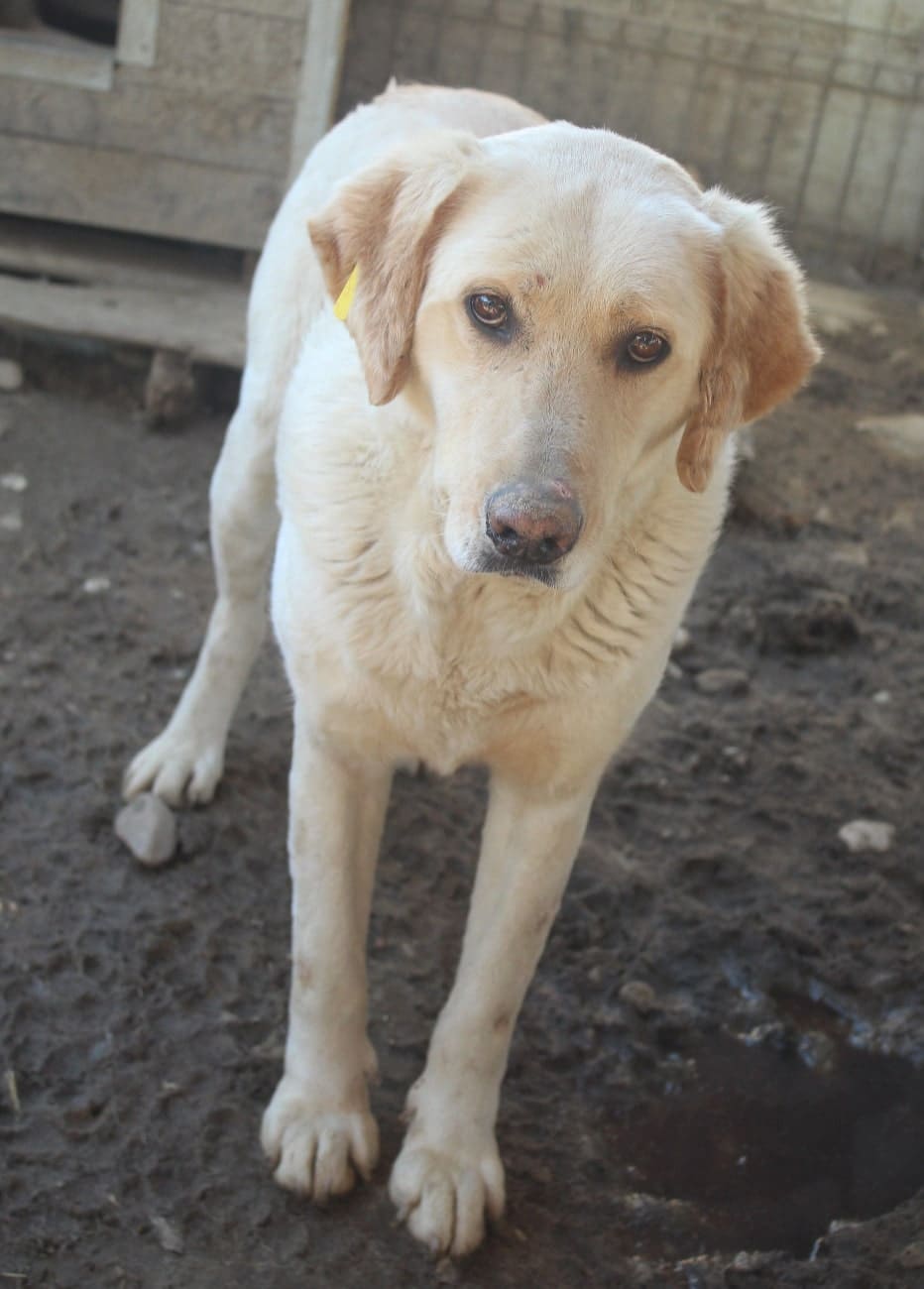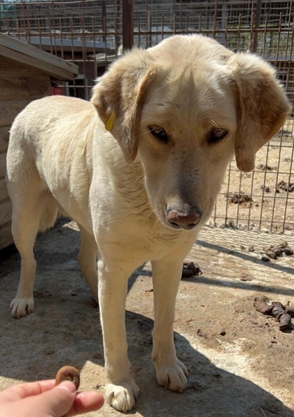 DONNY ist ein neugieriger, weiterhin noch unsicherer Rüde. Er kam dicht zu uns heran und schnupperte auch an unserer Hand, die Leckerlies zu nehmen hat er sich dann aber doch nur vom Boden getraut. Er wollte gerne, hat aber einfach nicht den Mut gehabt. Kein Wunder, wie soll er sich ohne Kontakt zu Menschen auch entwickeln? Seit mindestens 2020 sitzt er nun schon in Bucov!