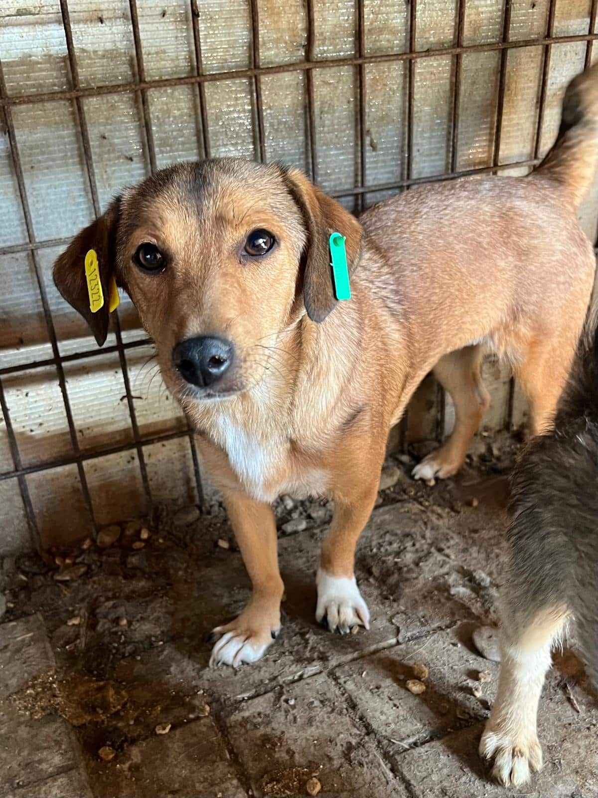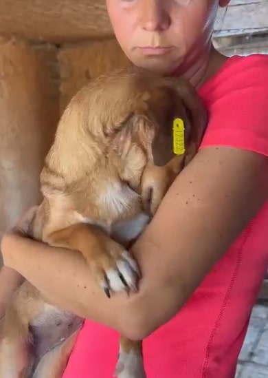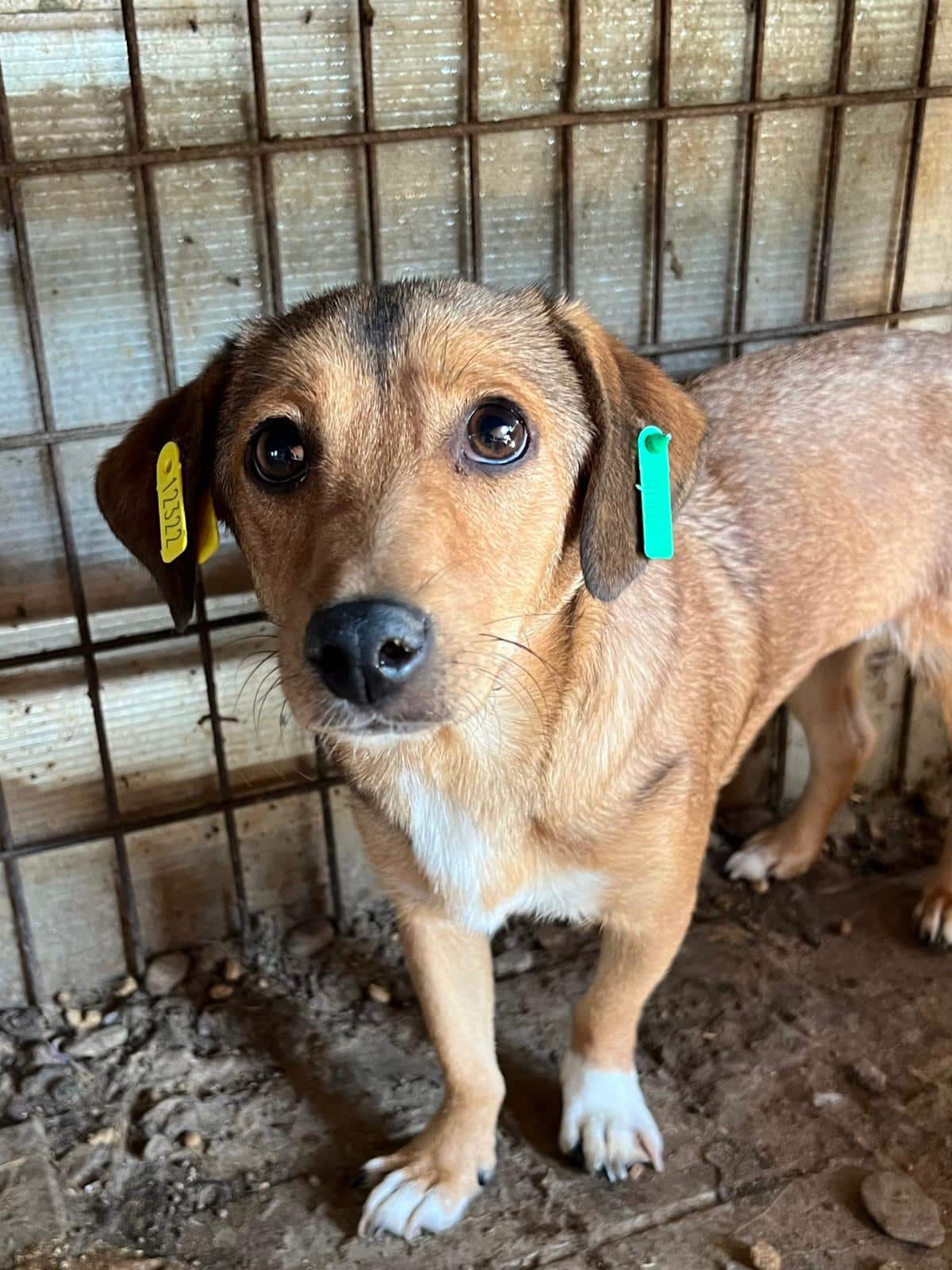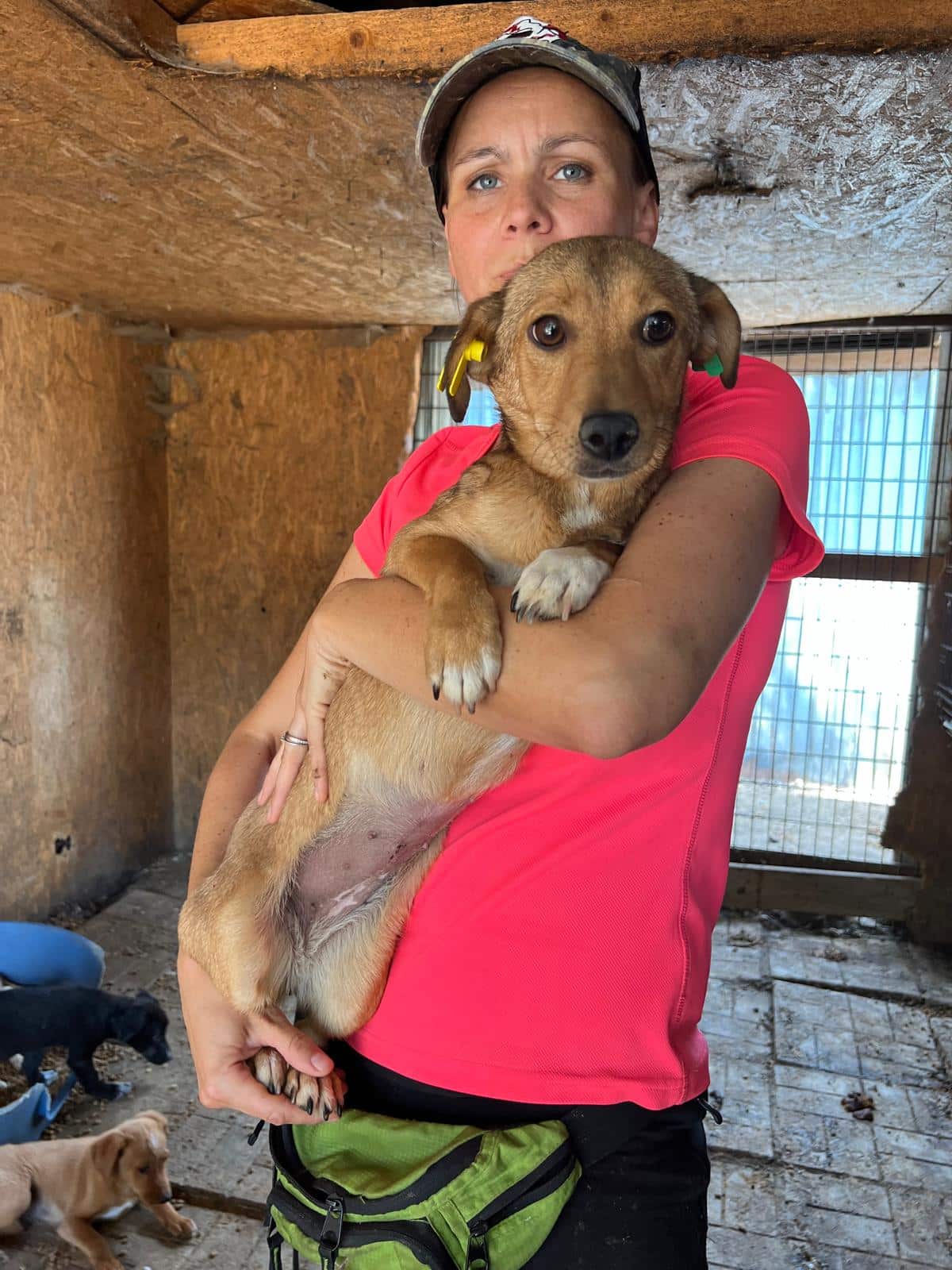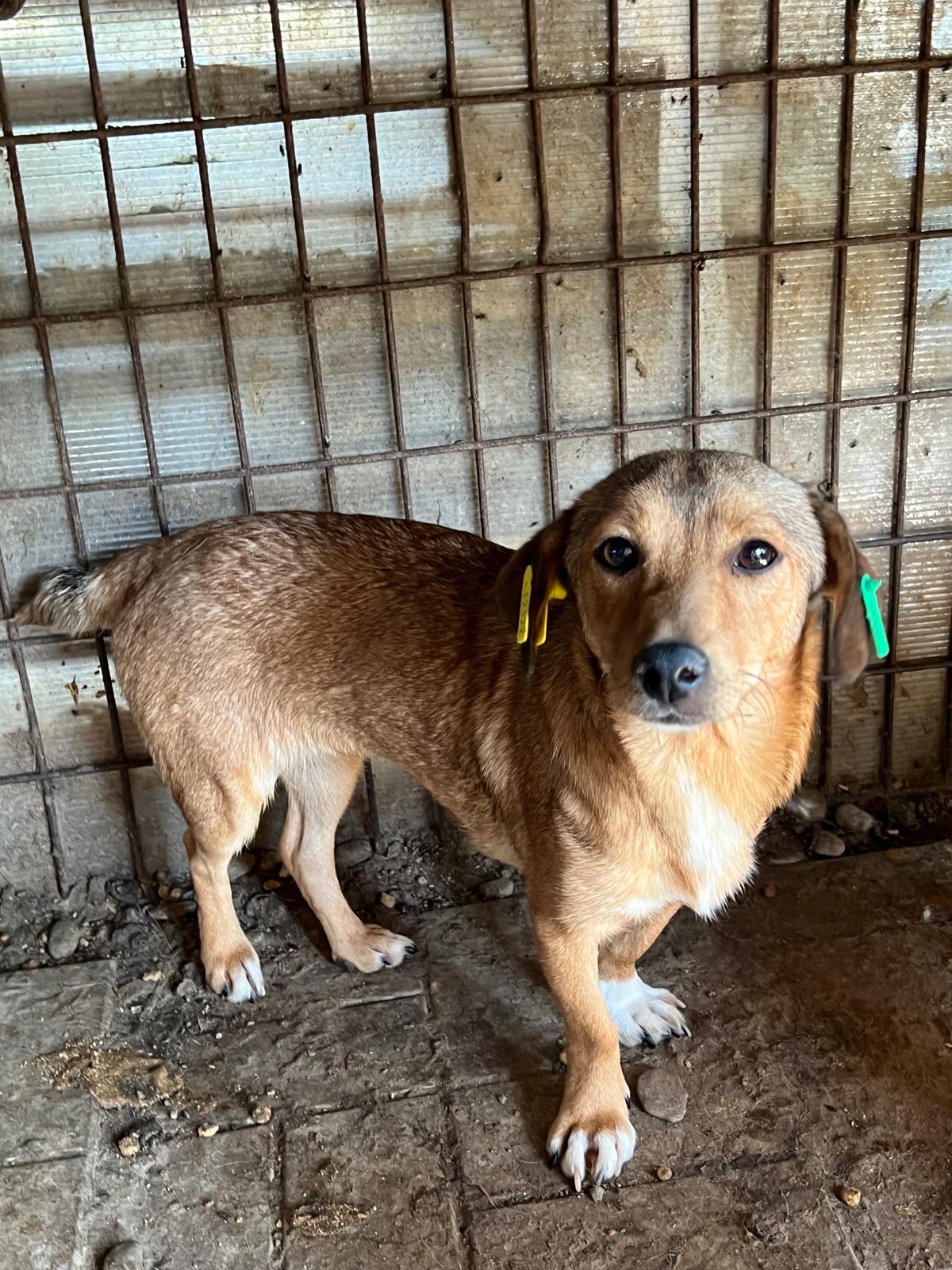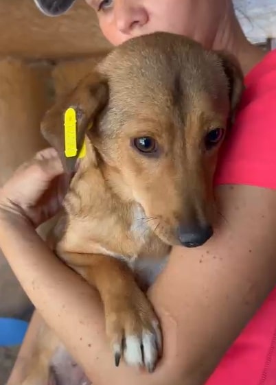 Die kleine DORI hockte unter einem Vorsprung, als wir den Kennel betreten haben. Sie sitzt in einem vollen Welpenkennel, was ihr einfach zu viel Trubel ist. DORI suchte Kontakt zu uns, wich aber zurück, wenn die vielen Welpen auf sie zugelaufen kamen. Sie schien froh zu sein, dass sie einen Moment Ruhe auf dem Arm genießen durfte. Am Geschehen ist die Süße durchaus interessiert, aber überfordert von der Situation. Wahrscheinlich reagierte sie auch deshalb gegenüber den Welpen mit ordentlich Futterneid und kommunizierte ihnen, dass sie auf Abstand bleiben sollen.