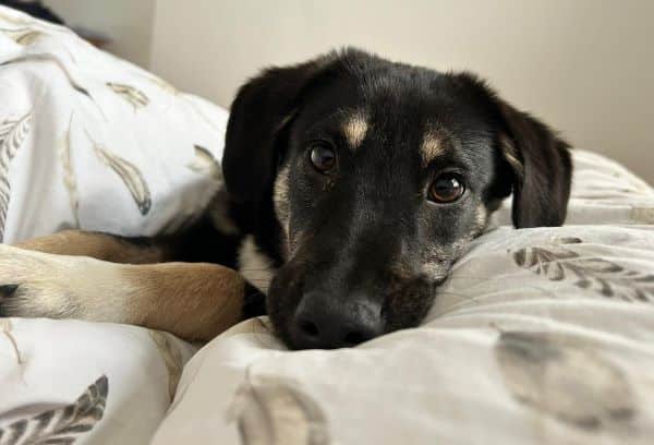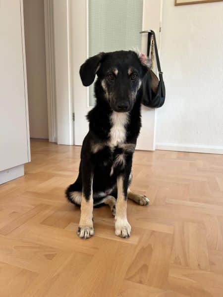 Wir haben auch zwei Freigänger Katzen, die sie die meiste Zeit wenig beachtet und in Ruhe lässt. In der Wohnung kommt Dori mittlerweile gut zu Ruhe. Natürlich ist sie junghundmäßig sehr verspielt und dreht auch öfter ordentlich auf. Dann knabbert sie auch gerne das ein oder andere an. Manchmal ist sie dann einfach übermüdet und muss begrenzt werden. In ihrer Box schläft sie meistens sofort, mit allen vieren von sich gestreckt, ein.