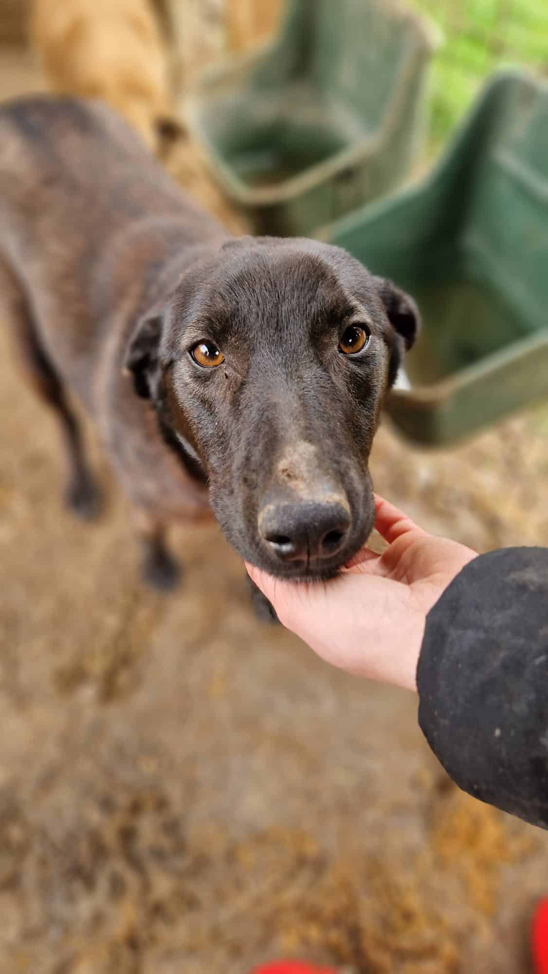 Die tolle DORINA mit der niedlichen Ringelrute zeigte sich von der ersten Sekunde sehr aufgeschlossen und freute sich enorm über unseren Besuch. Aufgeregt darüber, dass endlich jemand Zeit für sie hatte, wusste sie nicht, zu wem sie als erstes laufen sollte. DORINA genoss die seltene Zuwendung und ließ sich gern überall streicheln und durchkuscheln. Für so menschenbezogene Hunde ist die Isolation im Shelter besonders schlimm, denn sie müssen oftmals Monate darauf warten, dass jemand zum Schmusen vorbei kommt. Wir hoffen sehr, dass DORINA schon bald von ihren Menschen entdeckt wird und künftig nur noch Liebe und Geborgenheit erfährt – denn die wünscht sie sich so sehr. Mit ihren Artgenossen zeigte sie sich durchgehend verträglich.