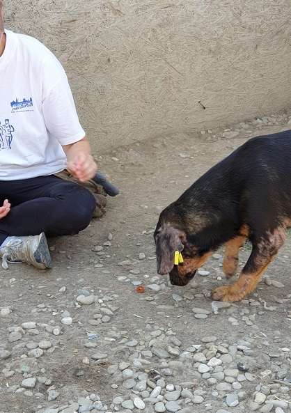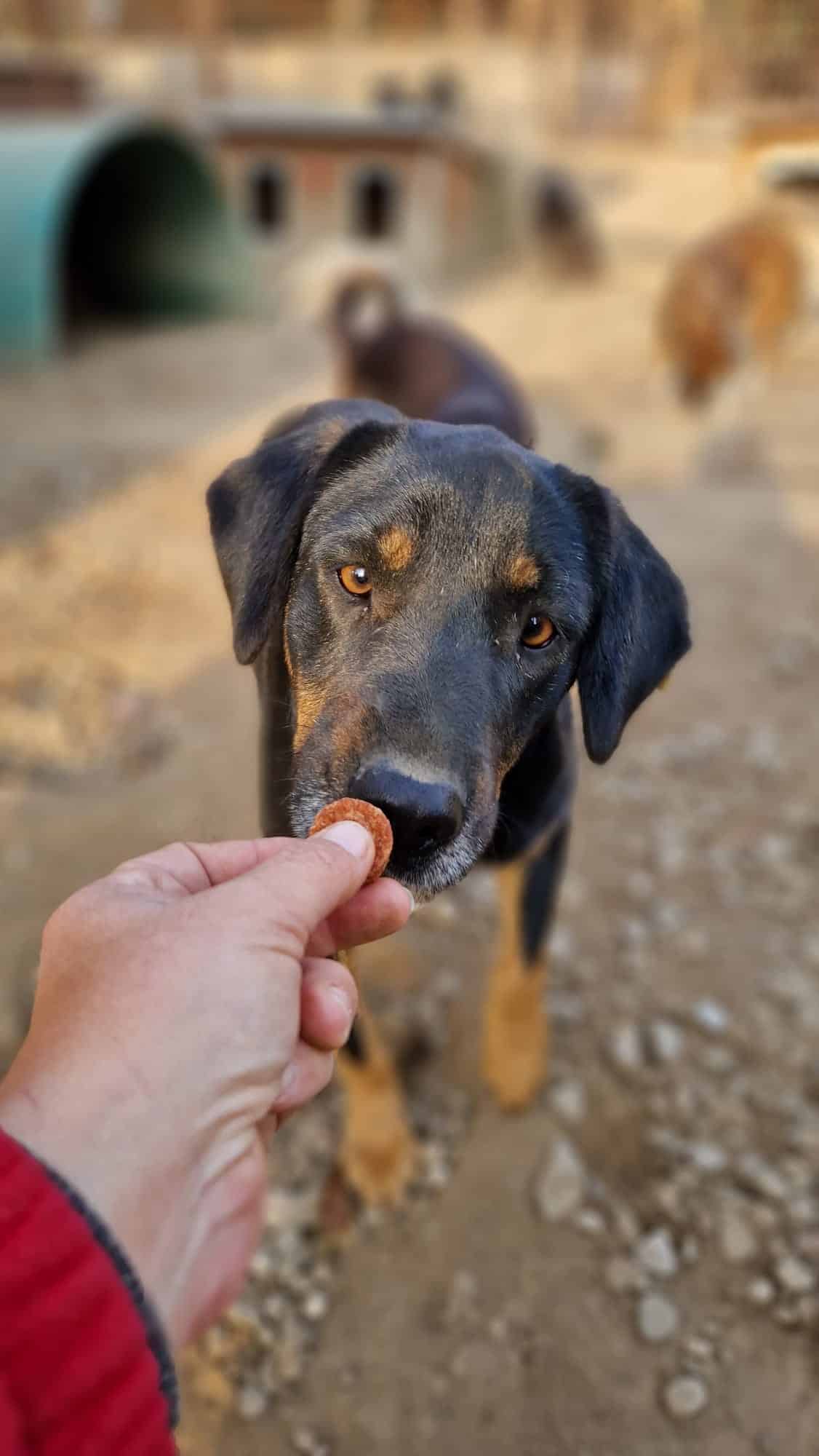 DOTTI wirkt müde. Müde vom tristen Shelterleben. Sie nahm unsere Leckerlis aus der Hand und sogar vom Oberschenkel, was für ein toller Schritt in die richtige Richtung. Sie würde eigentlich gern mehr wollen. Etwas Geborgenheit spüren wäre sicherlich was Schönes. Ihr fehlt der Mut zum letzten Schritt, doch es bedarf nur ein wenig Unterstützung.