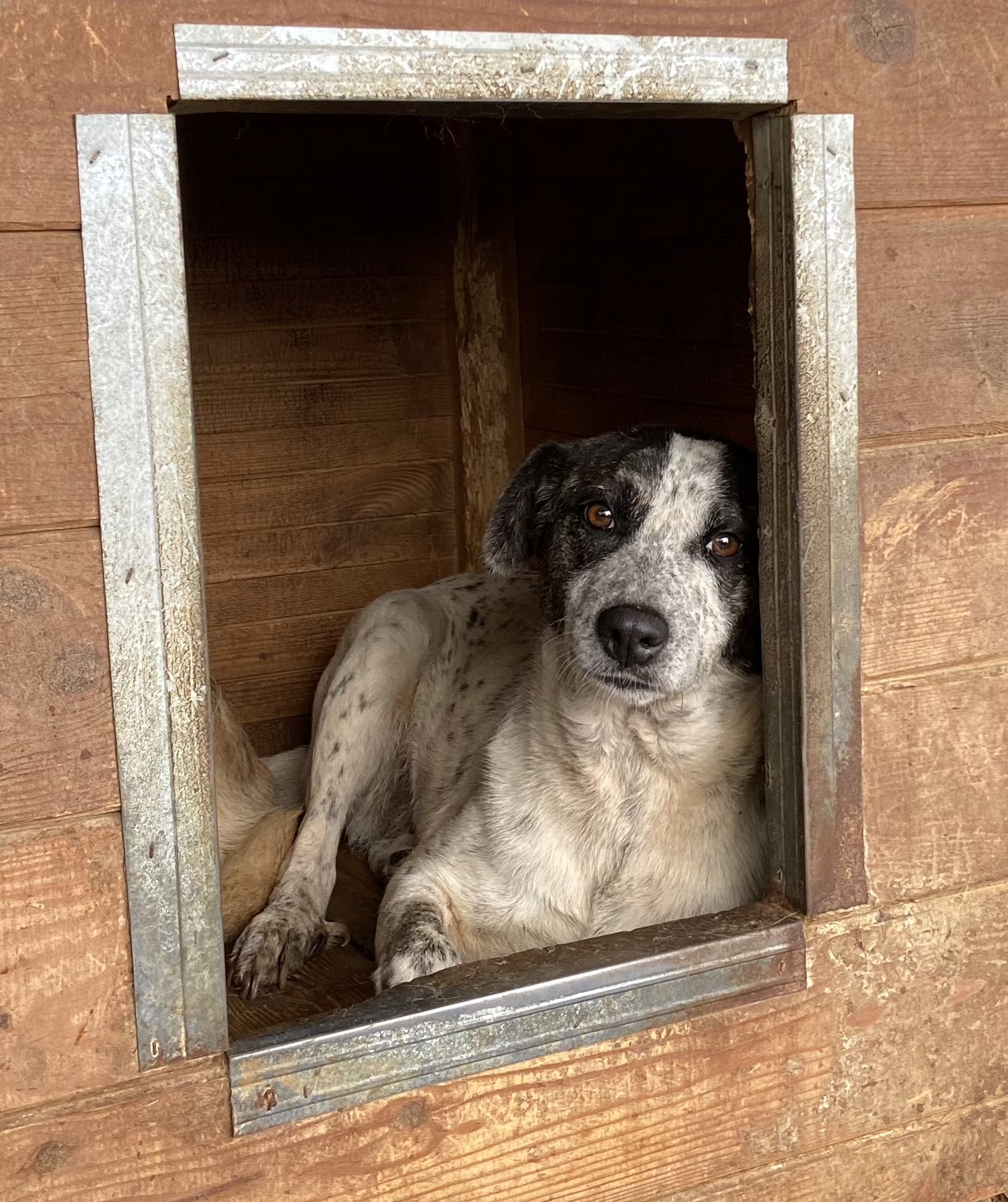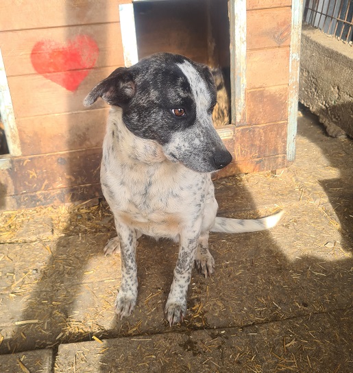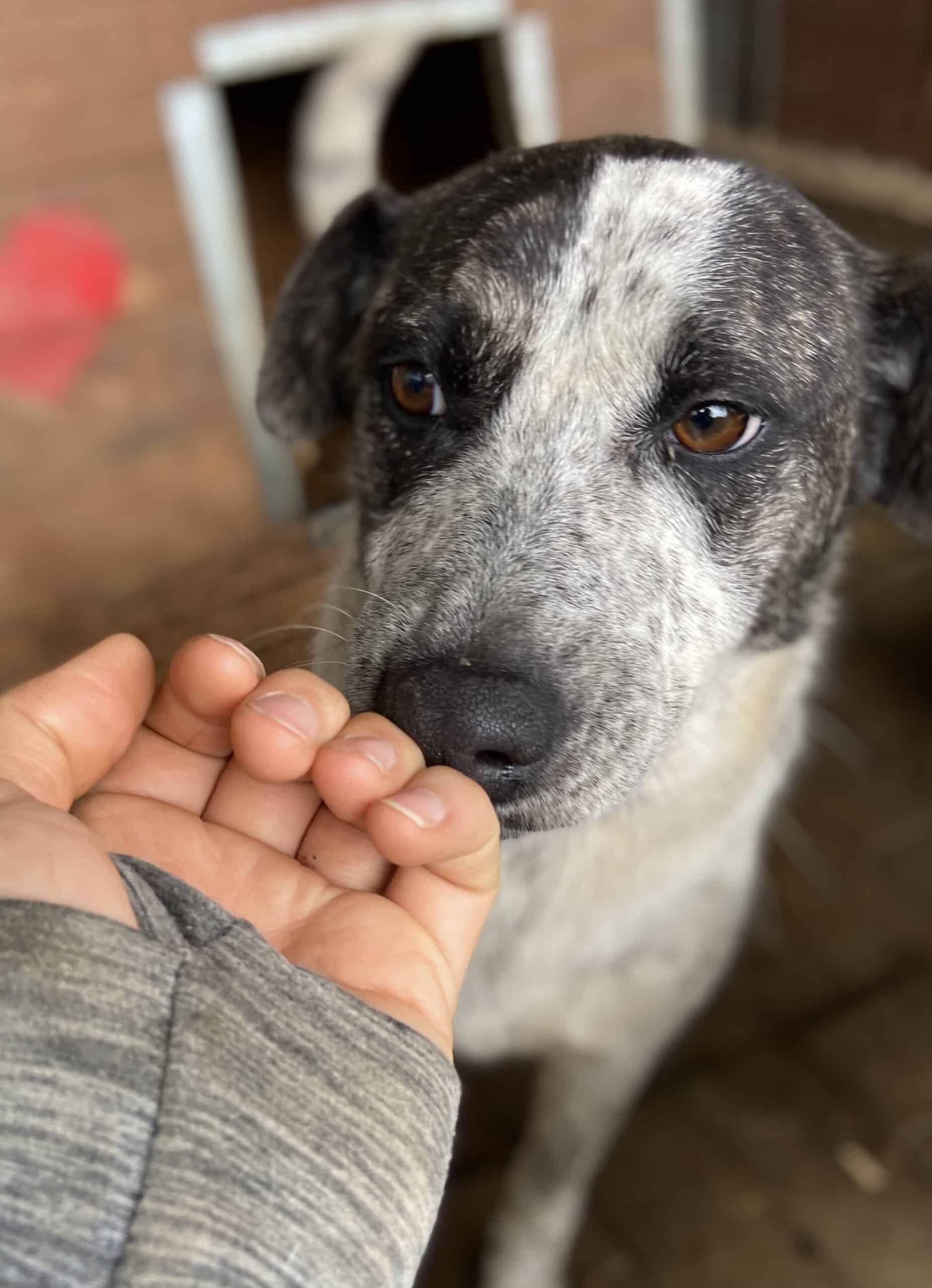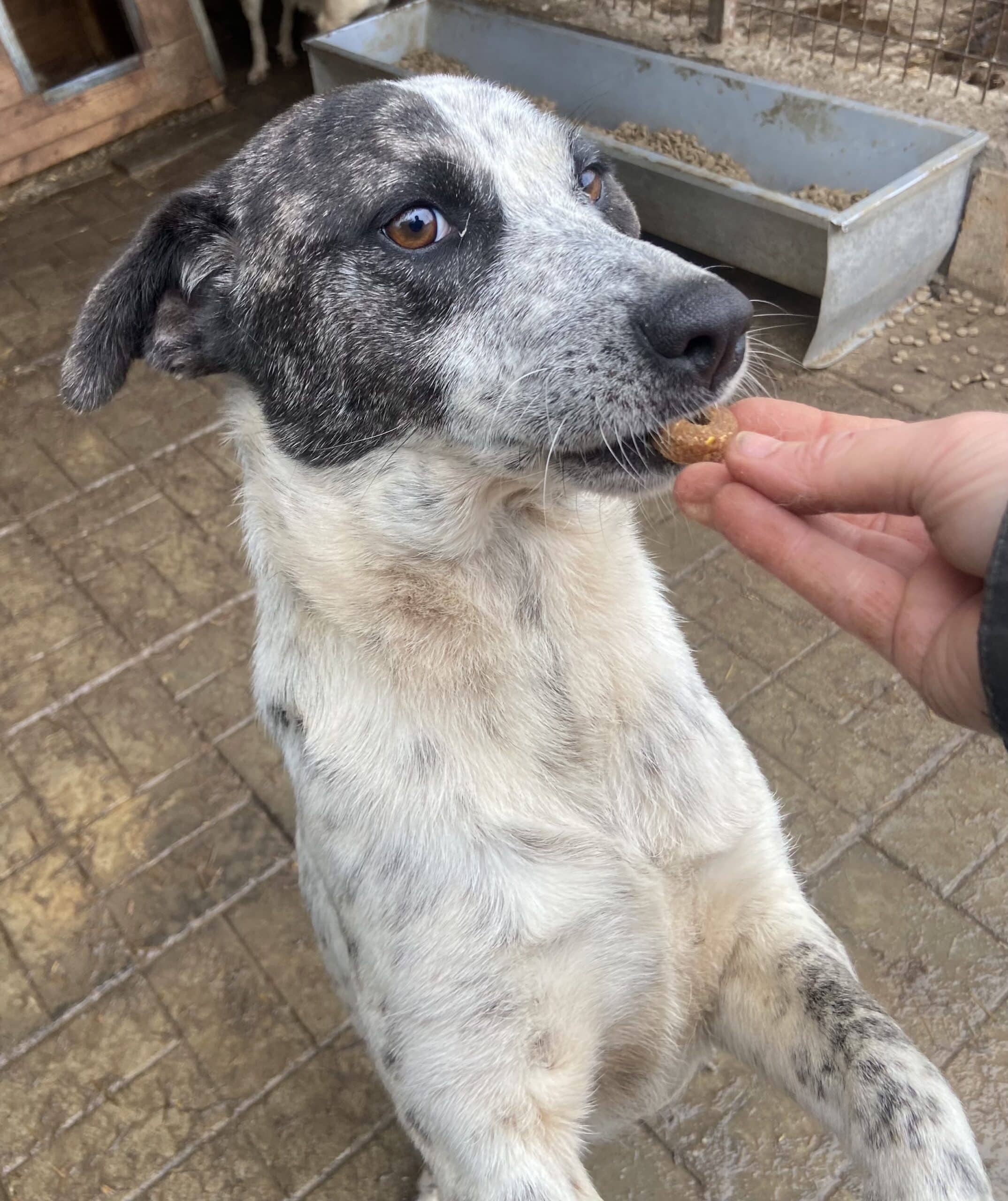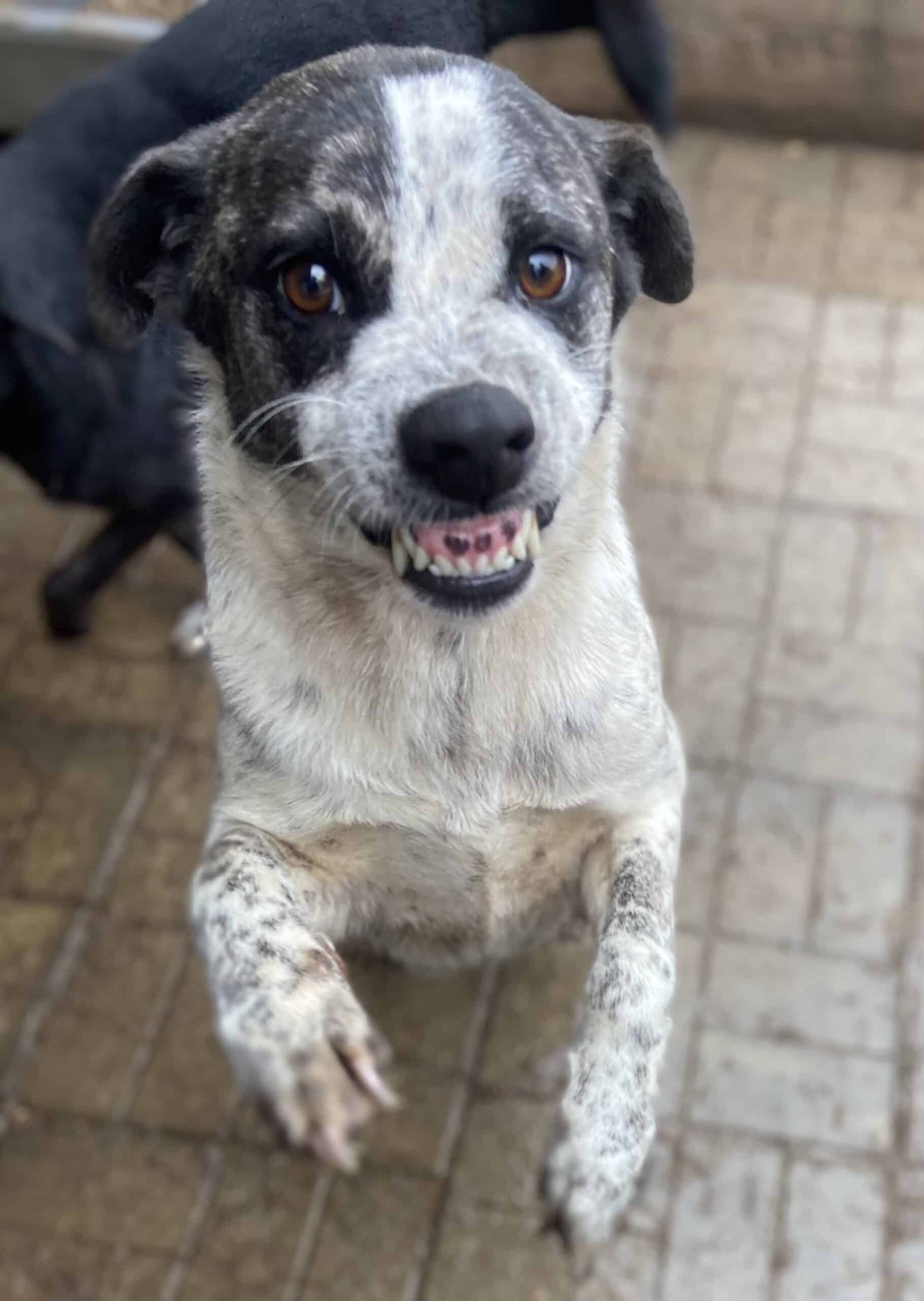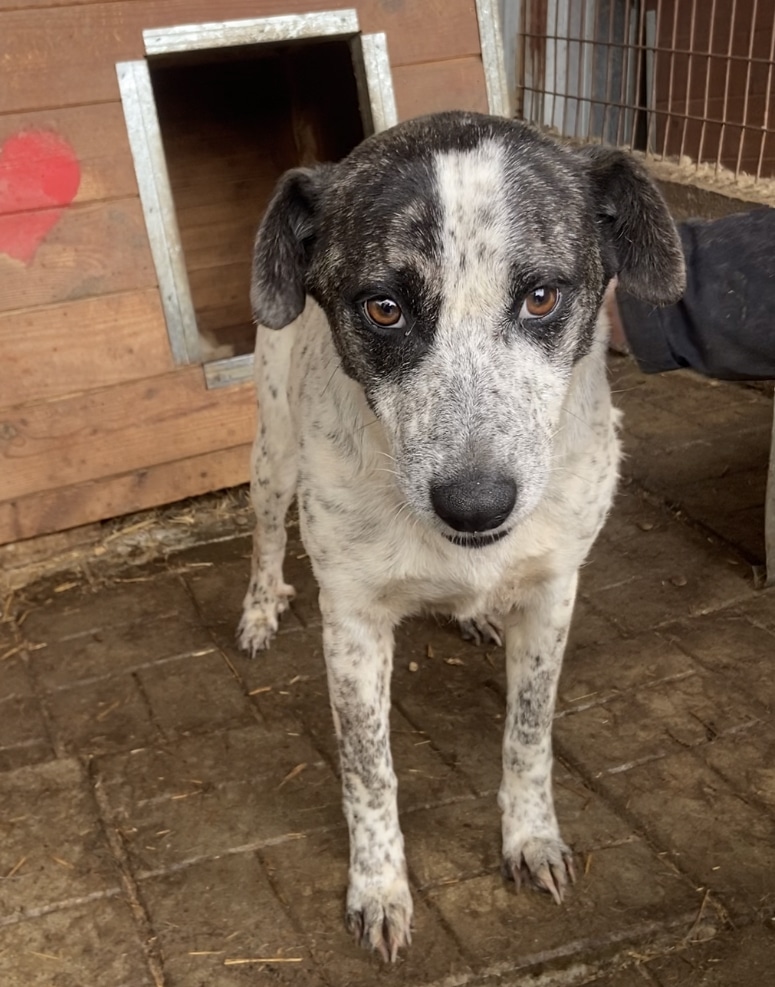 Als wir den Kennel betraten, lag die süße DOTTY noch in der Hütte und beobachtete alles. Erst als die Aufregung etwas vorbei war und wir uns ihr zuwandten, kam sie raus und zeigte sich sehr offen, zutraulich und interessiert. DOTTY ist eine ganz besondere Hündin, denn sie „grinst“, wenn sie sich freut (siehe Fotos). Dies kann als Droh-Signal missverstanden werden, doch bei ihr ist es einfach pure Freude. Die zarte DOTTY nahm gern unsere Leckerlie und ließ sich überall problemlos streicheln. Sie ist eine ganz liebe und ruhige Maus. Aktuell lebt DOTTY in einem Rudel aus Hündinnen, was gut funktioniert. Wir verstehen nicht, warum so ein toller Hund noch nicht entdeckt wurde, wir wünschen uns so sehr, dass unsere sanfte DOTTY endlich ihre Menschen findet und ein richtiges Leben kennenlernen darf, ohne all den Shelterstress.