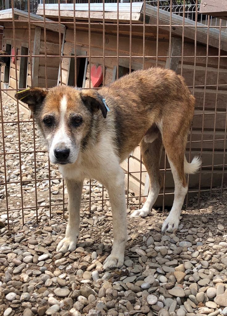 DROPS wirkte irgendwie verloren und wusste nicht so recht, wohin mit sich. Er war neugierig, blieb in unserer Nähe und nahm all seinen Mut zusammen, um die Leckerlis aus der Hand zu nehmen, ohne Panik o.Ä. An unseren Händen schnüffelte er ebenfalls. Ein inzwischen alter Bub, der seinen Lebensabend nicht noch länger im Shelter absitzen sollte.