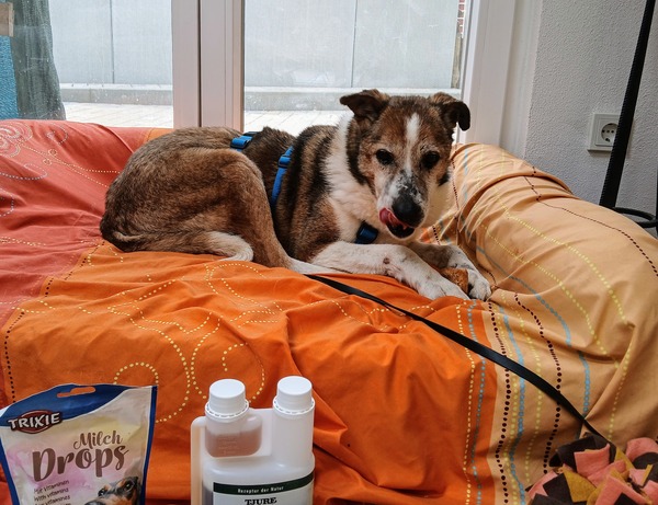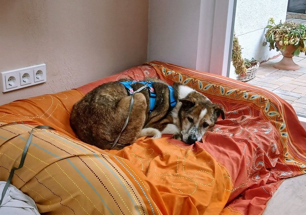Nach vielen langen Jahren im rumänischen Shelter, umgeben von Kälte, Lärm und Hoffnungslosigkeit, hat Drops es endlich geschafft – er ist in Deutschland angekommen. Sein eigenes Körbchen, ein sicherer Ort, ein Zuhause… all das ist neu für ihn.