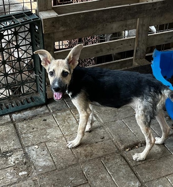 DUSTY ist ein toller Hund, aber leider auch viel zu dünn! Er war neugierig, immer dabei und nahm Leckerchen aus der Hand. Streicheln konnten wir DUSTY noch nicht. Wir gehen aber davon aus, dass er in einer anderen Umgebung und mit Eingewöhnungszeit, sicher noch gut auftauen wird. Mit den anderen Hunden in seinem Kennel war er verträglich.