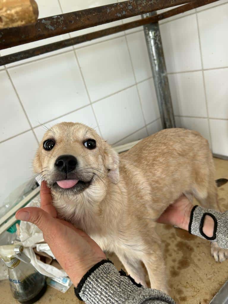 Rüde geb. ca. Dezember 2022 Größe: wird max. mittelgroß zu dünn, abklingende Hautprobleme (05/2023)