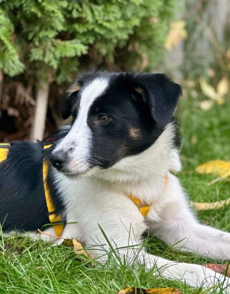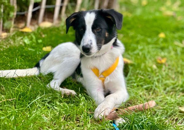 Ebby, eine wunderschöne Junghündin, ihre Fellzeichnung ist wirklich einzigartig. Seit Oktober ist sie auf unserer Pflegestelle und von Tag 1 hat sie sich sehr an ihrem Pflegefrauchen orientiert. Sie ist allem Neuen noch sehr skeptisch gegenüber, vor lauten Geräuschen erschrickt sie schon mal, aber sie ist trotzdem sehr interessiert. Staubsauber und Fön sind nun schon keine Gespenster mehr. Bei uns lebt sie mit zwei weiteren Rumänen (5 Jahre, m und w) zusammen. Mit denen ist sie im Spiel manchmal etwas übermütig oder tolpatschig und wird von denen zurechtgewiesen, das akzeptiert sie sehr gut, versucht aber immer wieder auf ihre verspielte Art mit einem Grinsen im Gesicht den Kontakt erneut aufzunehmen.