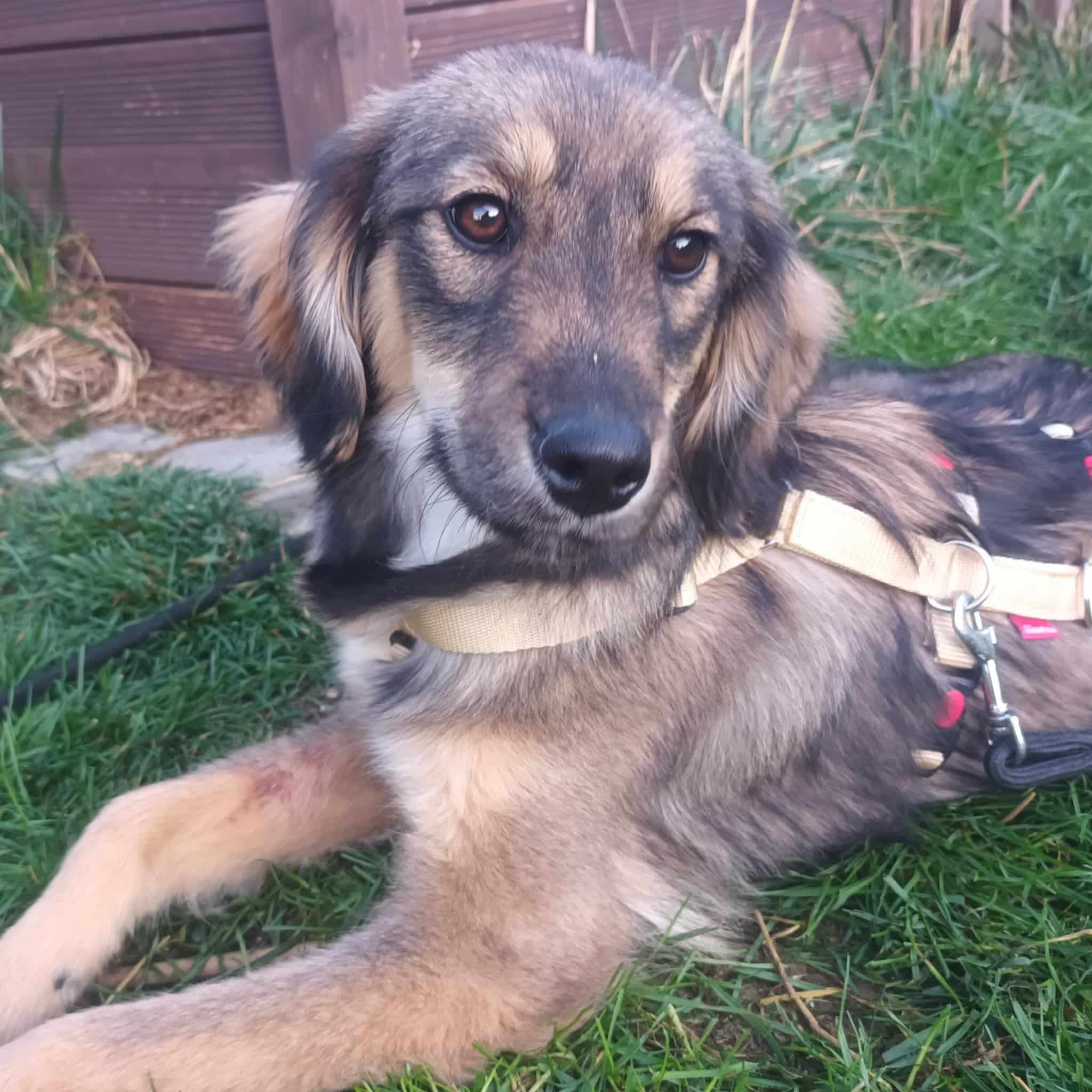 Die ersten 10 Monate ihres Lebens hat sie in einem kleinen, engen Kennel im Tierheim in Rumänien verbracht. Da sie vom Temperament eher zurückhaltend ist und wenig erlebt hat, sind für sie unbekannte Geräusche oder Personen erstmals unheimlich. Sie reagiert dann mit Weglaufen oder sich verstecken wollen.