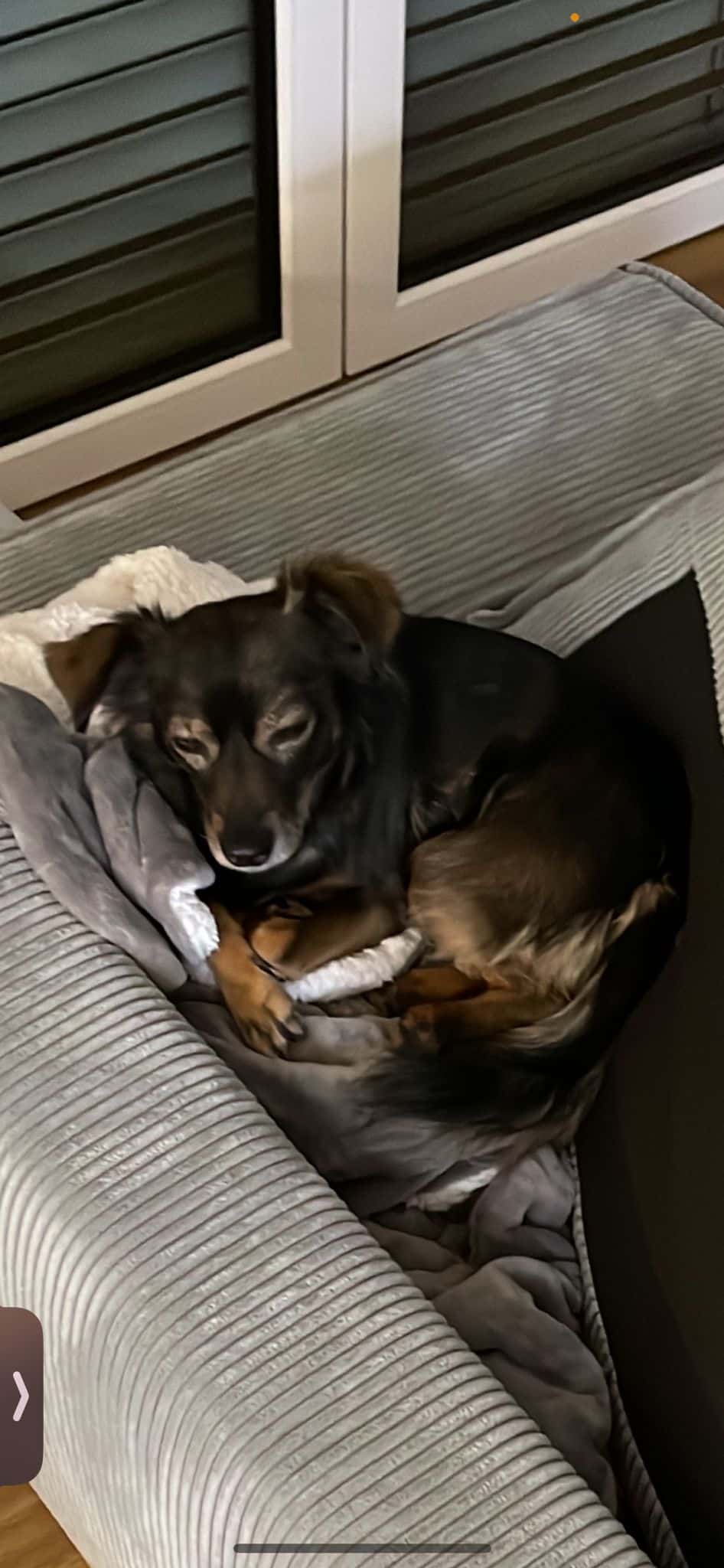 Eda ist ein bezauberndes, kleines ruhiges und selbstbewusstes Hundemädchen. Hat sie erst einmal vertrauen gefasst, möchte sie am liebsten die ganze Zeit gestreichelt werden und nah bei ihren Menschen sein. Nur schwer kann man hierbei ihren großen Kulleraugen, inklusive Dackelblick widerstehen. In der Wohnung ist sie ganz entspannt und liebt ausgiebige Nickerchen in ihrem Körbchen oder wenn sie darf auf der Couch. Auch als Bürohund verzaubert sie alle durch ihr freundliches Wesen, ihre bildhübsche Erscheinung und ihre ruhige Art. Eda ist zudem stubenrein, geht brav an und ohne Leine, hat keinen Jagdtrieb und fährt problemlos Auto. Eda liebt zudem Spaziergänge, bei denen sie ausgiebig schnuppern und andere Hundefreunde treffen darf. Bei schlechtem Wetter ist sie jedoch der Meinung, jagt man keine kleinen Hunde raus.