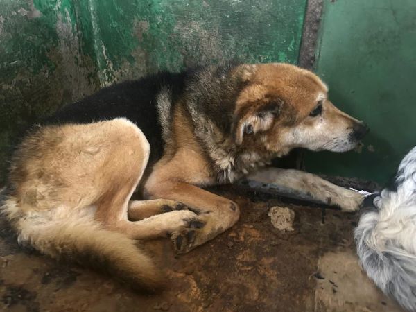 Dieser alte Rüde berührt einen sofort. Ansonsten muss man ein Herz aus Stahl haben. Er lag zusammen gekauert in der Ecke im VetKennel. Er wirkt resigniert und mit der Welt abgeschlossen. Jeglicher Glanz und Hoffnung sind aus seinen Augen verschwunden. Wird er recht haben, das es keine Hoffnung mehr für ihn gibt? Wir wissen es nicht und konnte ihm kein Versprechen geben, ob dies der Ort seines Lebensabends sein wird.