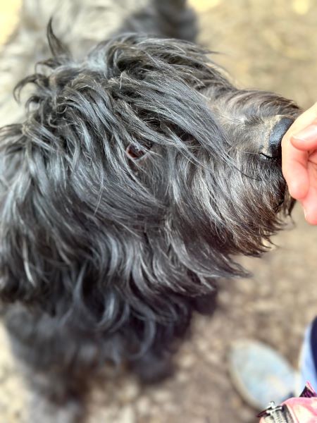 Von Anfang an begegnete er uns offen und ließ sich gerne anfassen. Unsere Streicheleinheiten hat er genossen. Er ist bestimmt ein angenehmer Gesellschafter, denn er strahlt merklich Ruhe und Gelassenheit aus.