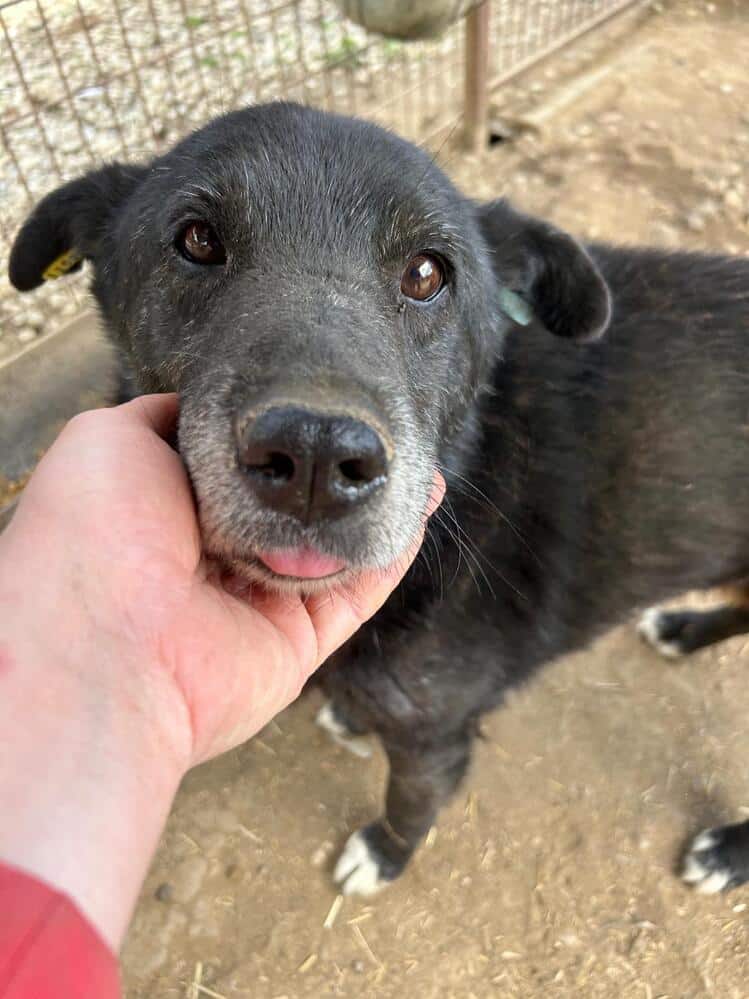 Erst zögerlich, doch dann ganz sanft nahm er unsere Leckerlis und ließ sich behutsam anfassen. Er wirkt erschöpft und macht einen sehr ruhigen Eindruck und ist in seinem Kennel verträglich.