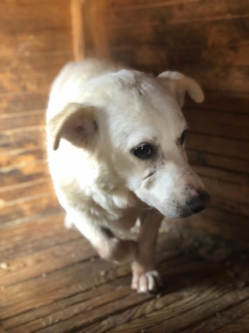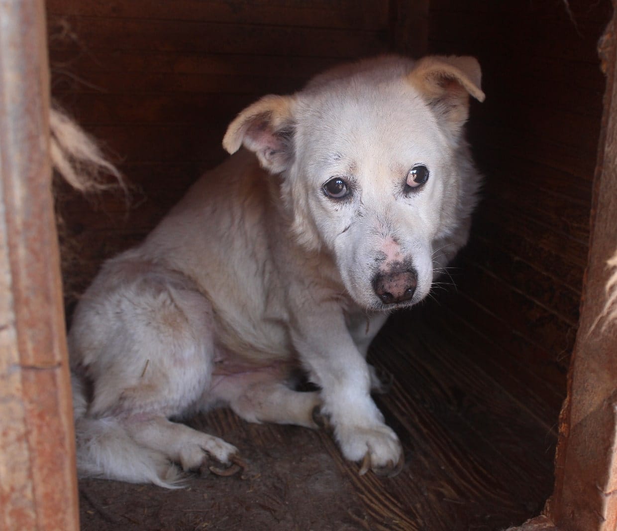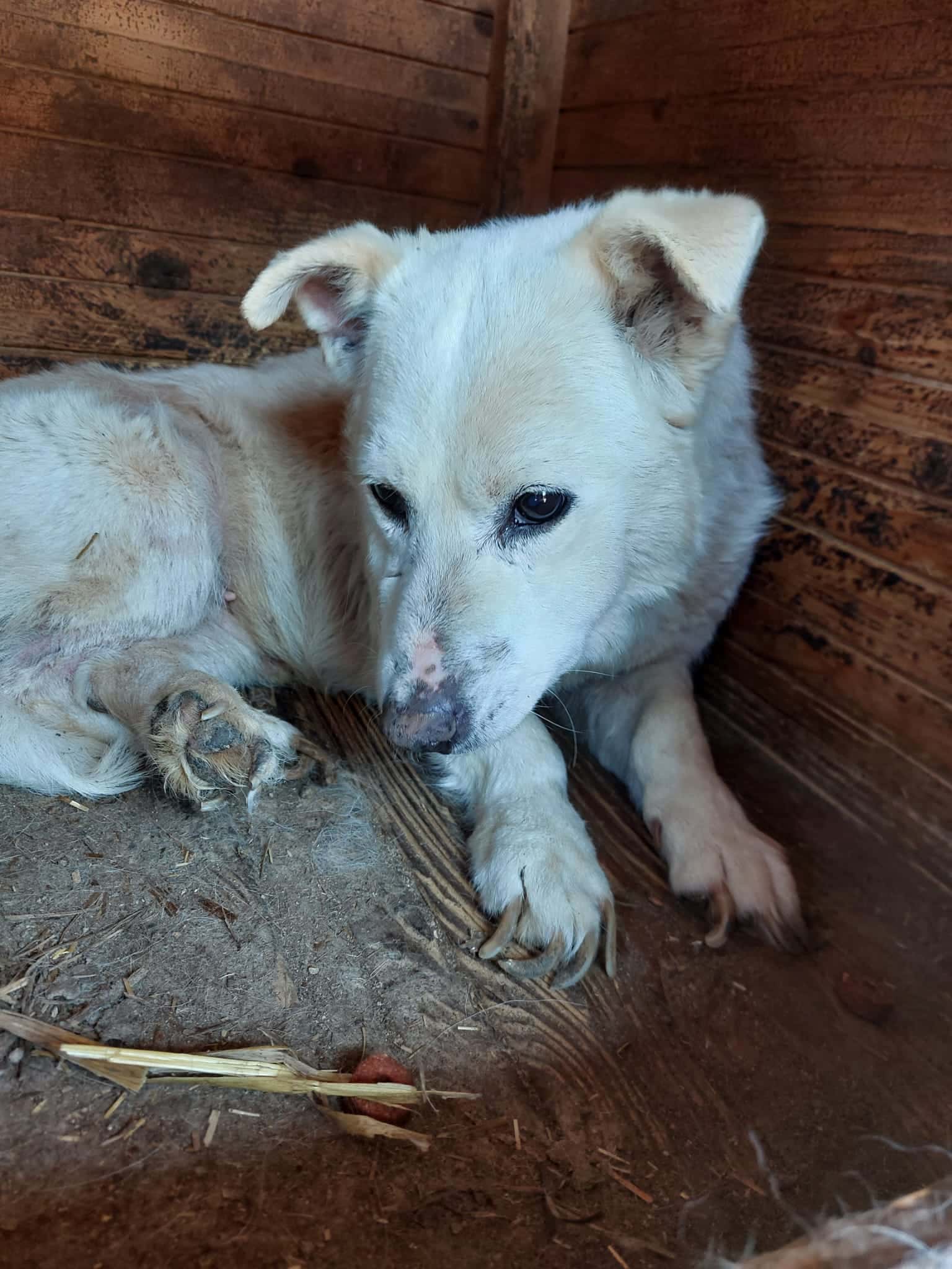 EIRA war bei unserem Besuch nur in der Hütte, zeigte sich dort unsicher und hat auch gezittert. Leider sind ihre Krallen schrecklich lang.