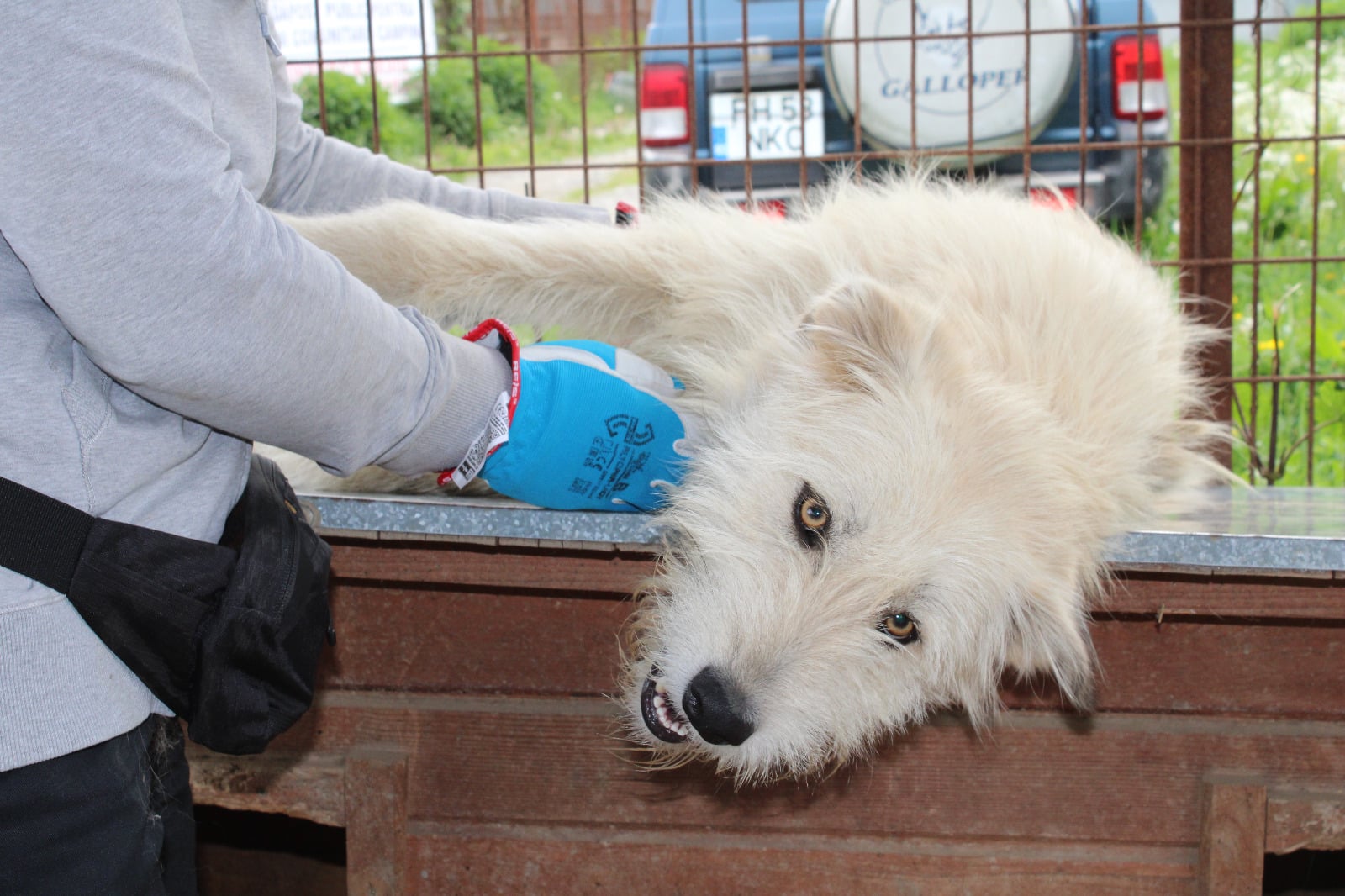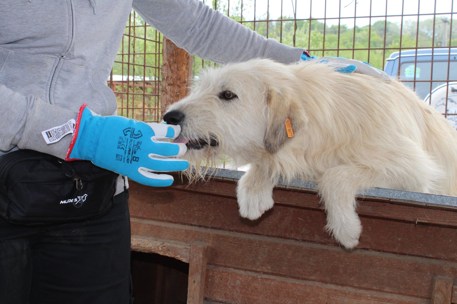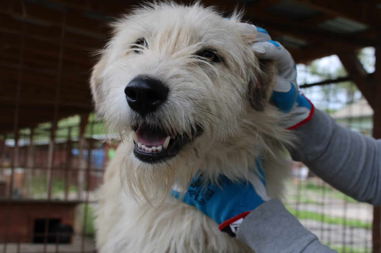 Überschwänglich begrüßt wurden unsere Volontäre vor Ort von diesem ganz bezaubernden beigen Strahlemann, der von den Aufmerksamkeiten und Streicheleinheiten gar nicht genug bekommen konnte. Er präsentierte sich als agile Frohnatur, die den Kontakt zum Menschen so dringend braucht. Ein ganz toller, unkomplizierter und verträglicher Kerl, der sein großes Glück mit seiner herzlichen Art hoffentlich bald finden wird.