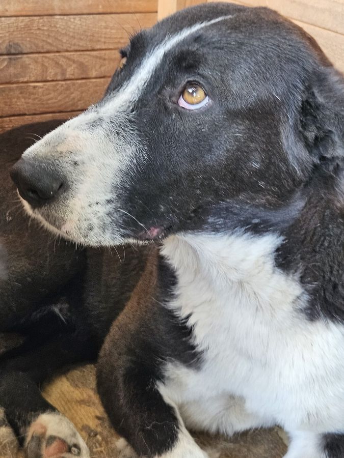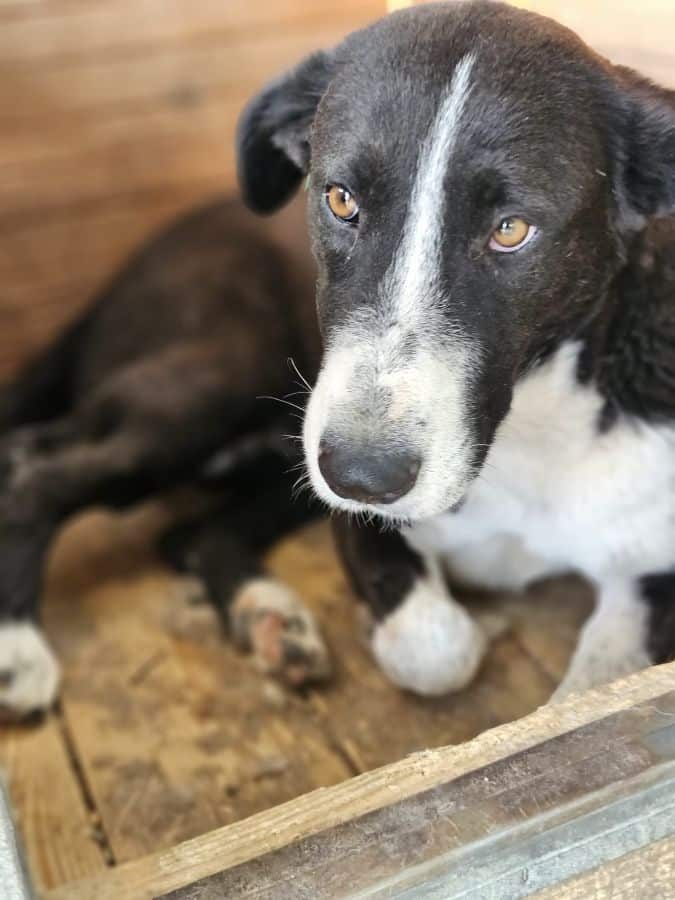 Die liebe ELFI blieb während unseres Besuchs ausschließlich in der Hütte. Als wir uns ihr zuwandten, hatten wir das Gefühl, dass sie froh war, dass wir sie gesehen haben. Sie zeigte sich sehr nett und gerne anfassbar. Schnell war aber auch klar, dass irgendetwas nicht stimmt. Ihr rechtes Hinterbein hat ein Problem und ist verletzt/verkürzt. Ihre sichere Hütte wollte sie nicht verlassen und sie scheint insgesamt völlig überfordert mit der gesamten Situation zu sein. Wir konnten sie trotzdem für einen kurzen Moment aus der Hütte locken. Das rechte Hinterbein entlastet sie und es sieht insgesamt etwas deformiert aus. Wir hoffen sehr, dass die nette ELFI schnell gesehen wird und eine Chance auf eine Ausreisemöglichkeit bekommt, damit sie sich nicht mehr verstecken muss und ihr Bein in Ruhe heilen kann. Die zuständige Tierärztin ist informiert. Sie wurde mittlerweile in der Tierklinik untersucht. Es handelt sich um einen bereits abgeheilten alten Bruch.