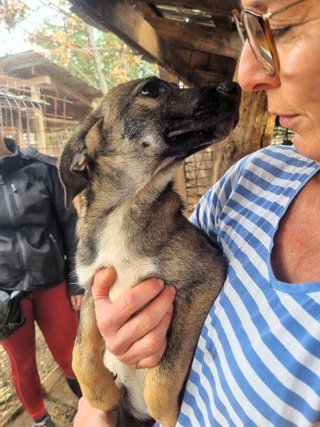 ELIAS lebt in einem winzigen Zwinger zusammen mit seiner Mutter und seinen Geschwistern. Wir konnten nur maximal zu zweit rein gehen, weil sich sonst gar keiner mehr hätte bewegen können. So steht er tagtäglich im Matsch und wirklich austoben können sich die kleinen Racker auch nicht. Leider ist ELIAS´ Mama eine schüchterne Hündin, die bisher nicht viele gute Erfahrungen mit Menschen sammeln durfte, und so wird auch Elias schon leicht unsicher. Kraulen kannte er gar nicht und fand das erstmal komisch. Auf dem Arm blieb er aber ganz ruhig. ELIAS sollte bald ausreisen dürfen, damit er sich nicht aufgrund fehlender Begegnungen komplett scheu entwickelt. Dann wird er wahrscheinlich nie mehr die Chance auf ein schönes Leben bekommen.
