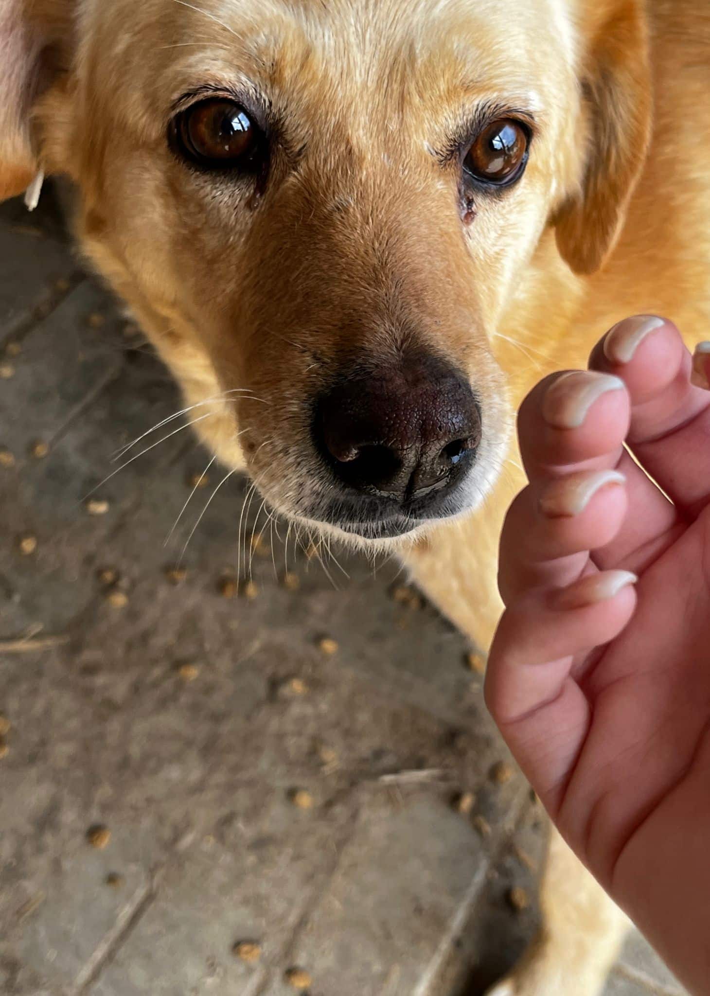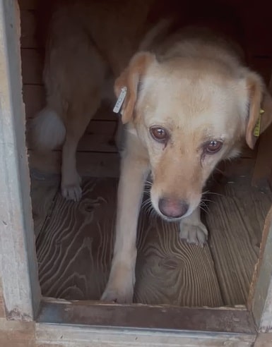 ELIDA ist eine sehr liebe und freundlich Hündin, die uns sehr interessiert beobachtete. Unsere Leckerlis nahm sie gern in ihrer sicheren Hütte aus der Hand, für mehr fehlte der Süßen noch der letzte Schritt. Sie taut bestimmt schnell auf, denn als wir sie beim Vorbeilaufen berührten, war sie nicht panisch oder schreckhaft.
