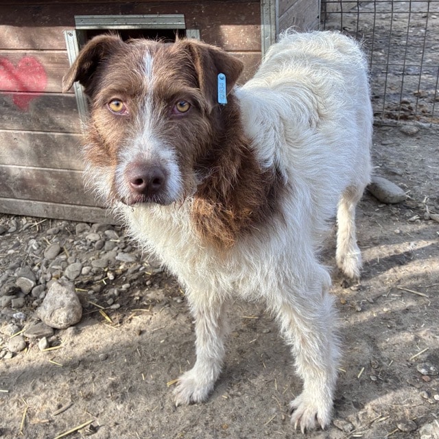 Unsere wunderschöne ELIN mit ihren ausdrucksstarken Augen hält nun bereits seit 4 unglaublich langen Jahren im riesigen Shelter aus. Bei diesem Besuch zeigte sie sich erneut neugierig und beobachtete genau, was wir machen. Sie kommt immer wieder nah heran, um vorsichtig und mit etwas Abstand nach uns zu schnuppern, traut sich jedoch nicht, über ihren Schatten zu springen und die mitgebrachten Leckerlie aus unseren Händen zu nehmen. Diese frisst ELIN vom Boden in unserer Nähe. Den Kontakt zum Menschen kennt die sensible Hündin einfach nicht – noch nie hat sie die Chance bekommen, zu lernen, was Vertrauen ist. Wir wünschen der verträglichen Maus von Herzen, dass sie nun endlich gesehen und von erfahrenen und einfühlsamen Menschen an die Pfote genommen wird. In einer stressfreien Umgebung und an der Seite eines netten Ersthundes würde ELIN sicher mit ausreichend Zeit allmählich auftauen können. Wir hoffen, dass sie nach all der verlorenen Zeit auf der Sonnenseite ankommen darf.