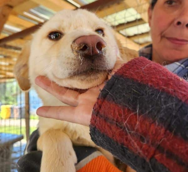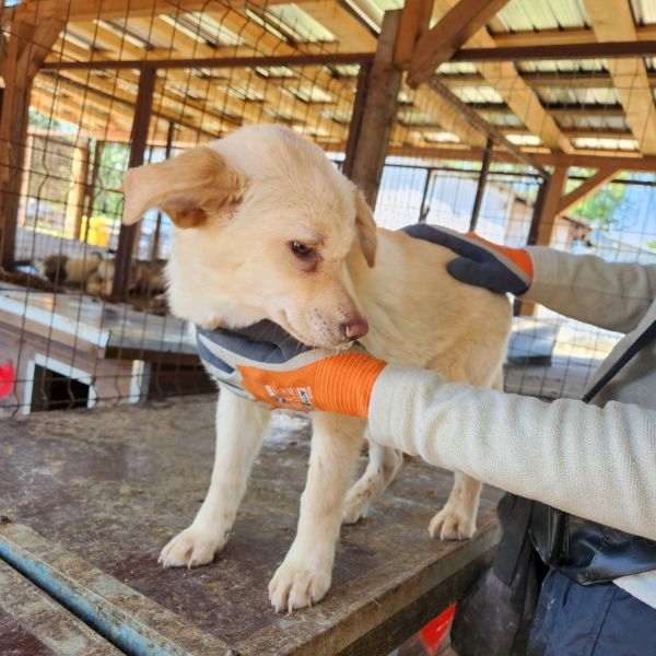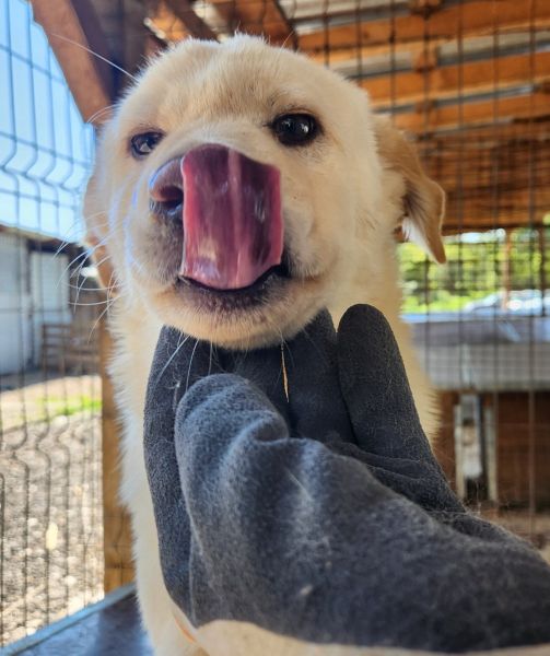 Wesen & Zutraulichkeit (Character & Trustworthiness) | welpentypisch (typical for puppies), verspielt (playful), offen (open), freundlich (friendly), neugierig (curious), überall anfassbar (touchable everywhere), nimmt Leckerchen (takes goodies), zutraulich (trustful) |