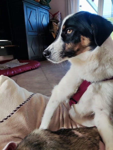 Bett und Sofa sind hier tabu, das hat sie auch rasch verstanden und hält sich brav dran. Sie ist nicht futterneidisch und ich kann ihr gefahrlos Dinge wieder abnehmen. Vor unseren Katzen hatte sie zunächst große Angst; auch hier ist inzwischen Entspannung eingetreten und sie erträgt es, wenn die an ihr vorbeilaufen.
