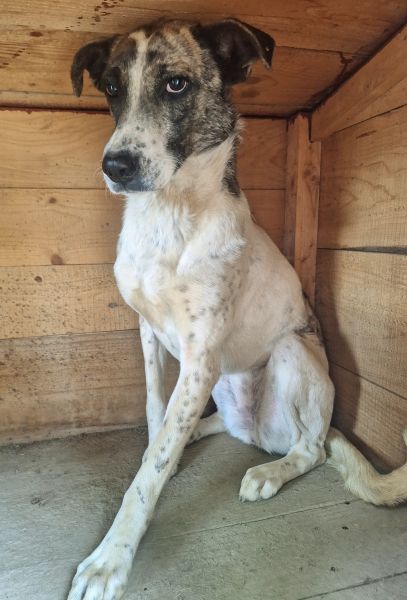 Ellen ist eine Hündin, die man nicht vergisst. Zart, sanft und still begegnet sie der Welt – mit einer Mischung aus Angst und vorsichtiger Neugier. Am Anfang ließ sie sich nur in ihrer kleinen Hütte anfassen, dort, wo sie sich sicher fühlte. Doch je mehr Zeit wir bei ihr verbrachten, desto mehr öffnete sie sich. Und irgendwann – ganz vorsichtig – ließ sie auch außerhalb der Hütte Berührung zu. Sie nimmt Leckerlis aus der Hand, zaghaft, aber voller Vertrauen. Und mit jedem Blick, den sie uns schenkt, zeigt sie: Ich möchte so gerne, ich trau mich nur noch nicht ganz.