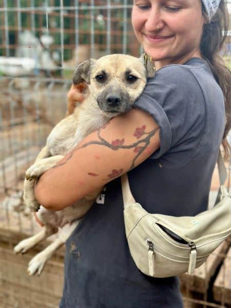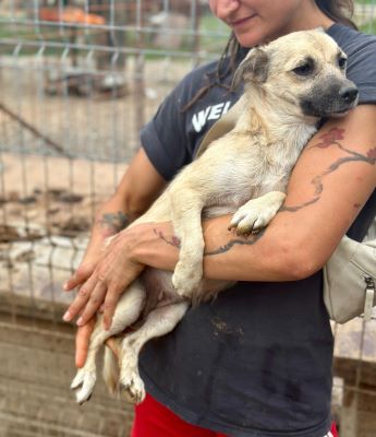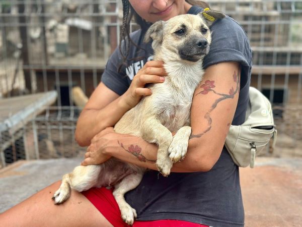 Kam am 09.08.24 ins Shelter. Eine bezaubernde, kleine Hundedame, die mal Welpen hatte. Obwohl alles für sie neu und fremd war, konnten wir sie prima auf den Arm nehmen. Sie darf ab ersten September Trapo fertig geimpft reisen. Hoffentlich kann sie das schreckliche Shelter bald wieder hinter sich lassen.