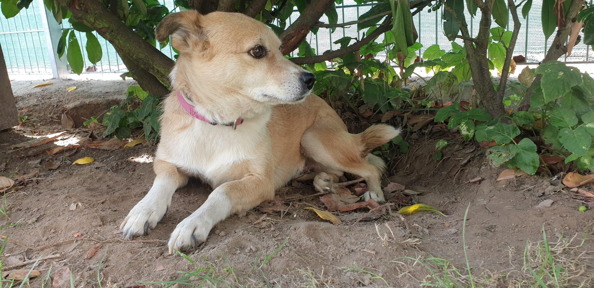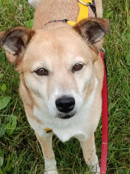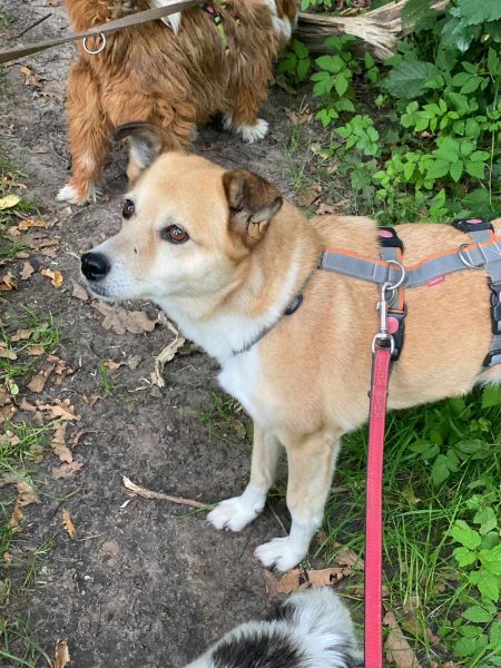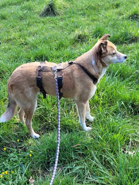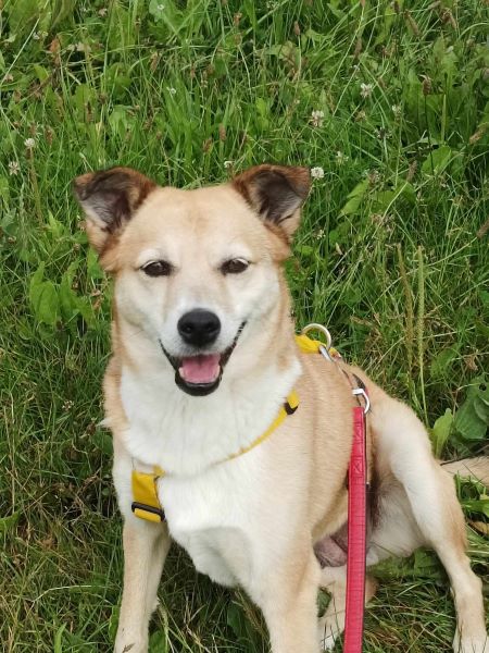 Elody ist eine ganz besondere Hündin, die sich bisher häufig hinter ihrer Angst versteckt. Bei ihr bekannten Menschen kann sie sich bereits freuen und lässt sich auch gerne streicheln. Bei Fremden ist sie defensiv, versteckt sich unter ihrem Lieblingsbaum oder erstarrt. Wir üben fleißig mit ihr. Das An- und Ausziehen des Sicherheitsgeschirr ist mittlerweile kein Problem mehr. Elody läuft gut an der Leine und ist gerne draußen unterwegs.