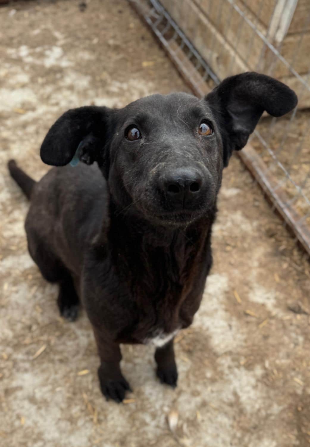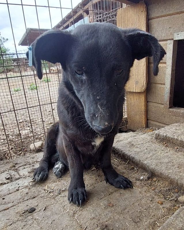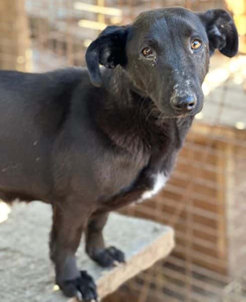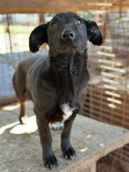 Die schwarze Eloisa mit den Dackelbeinen wurde uns bei unserem Besuch im Tierheim Bucov/Rumänien von der Tierärztin ans Herz gelegt. Sie macht sich große Sorgen um Eloisa, denn sie wurde immer wieder in verschiedene Gruppenzwinger mit den anderen Hunden umgesetzt und entweder kam Elisa nicht mit den anderen Hunden zurecht oder diese nicht mit ihr. Das Problem ist sicherlich Elisas Futterneid gegenüber anderen Hunden. So wurde sie nun in einen kleinen Zwinger einzeln untergebracht, den sie aber nun wieder verlassen muss, da dort eine Mama mit ihren Welpen reinkommt. Daher bleibt ihr nun nur noch eine Gitterbox in der Quarantäne, in der es gar keine Bewegung mehr geben wird. Eloisa hat aktuell ein entzündetes Auge, welche aber behandelt wird und eine schiefstehende Kralle an einer Vorderpfote, die von einer alten Verletzung stammt. Die Kralle stellt jedoch keine Beeinträchtigung dar und muss nicht behandelt werden. Eloisa ist eine sehr liebe, menschenbezogene Hündin, die bereits selbst Welpen hatte. Sie zeigte sich uns gegenüber sehr offen und anhänglich, aber nicht aufdringlich. Unsere Streicheleinheiten und Leckerchen waren für Elisa eine willkommene Abwechslung von dem tristen Tierheimalltag. Wir hoffen sehr, dass dieser kleine Schatz möglichst schnell das Tierheim verlassen kann.