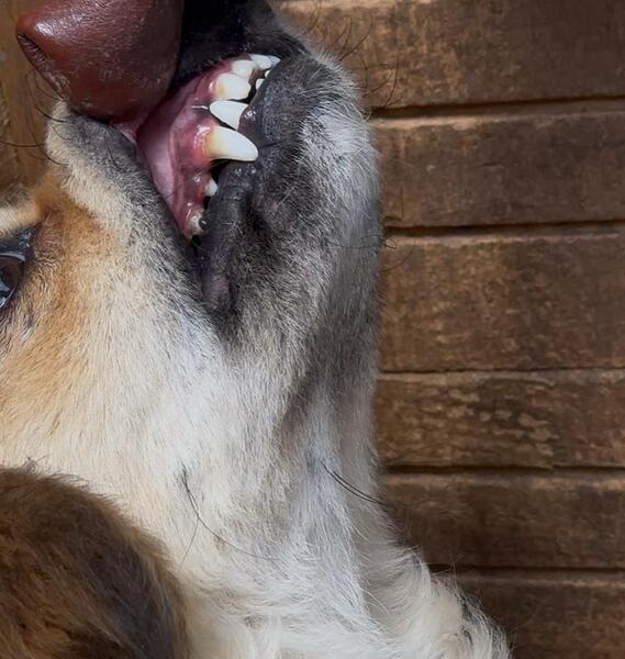Als wir sie schließlich vorsichtig in die Hütte bewegten und versuchten, sie zu berühren, zeigte sie uns, dass sie sich unwohl fühlte. Mit Abwehrschnappen signalisierte sie, dass ihr intensive Zuwendung und Berührungen aktuell noch zu viel sind. Sie konnte diese Nähe nicht genießen – vermutlich hat sie in ihrem bisherigen Leben kaum positive Erfahrungen mit Menschen gemacht.
