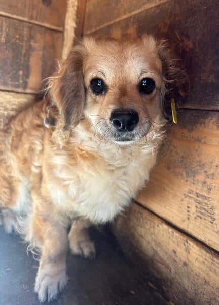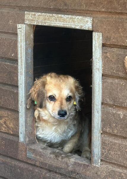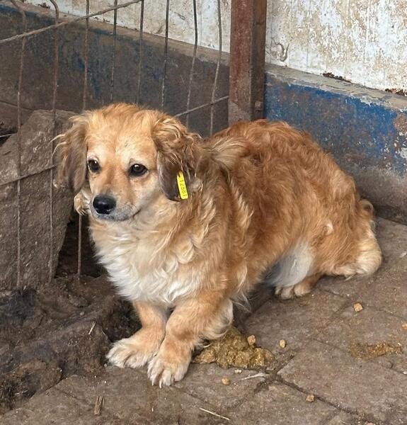 ELVIA ist eine sehr kleine Hündin in einem riesengroßen Shelter und all die Eindrücke, Geräusche und Bewegungen überfordern sie sichtlich. Während unseres Besuchs beobachtete sie uns aus sicherer Entfernung und hielt Abstand.