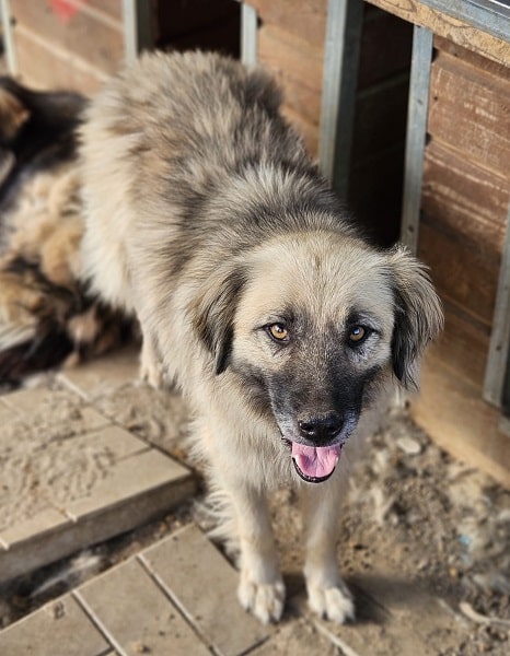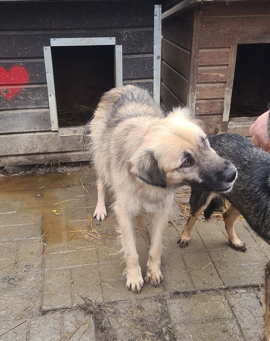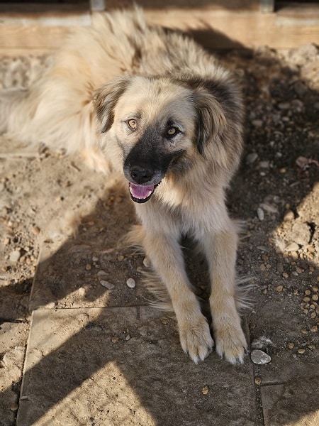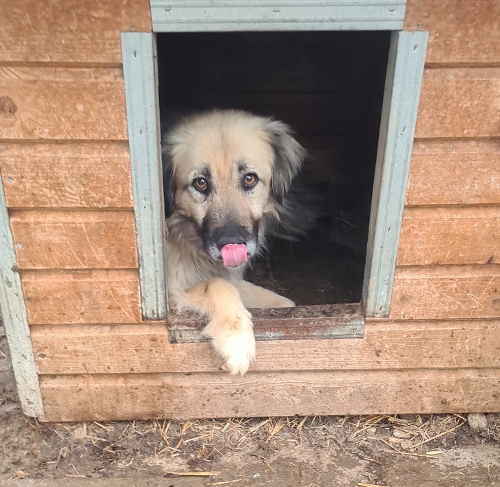 ELVOS ist nach wie vor ein wunderschöner Hund mit traurigen, sorgenvollen Augen. Er schien nicht recht zu wissen, was er mit seinem seltenen Besuch anfangen sollte. Trotzdem nahm er die angebotenen Leckerchen vorsichtig aus der Hand. In der Hütte erlaubte er uns dann sogar ihn zu streicheln. Mit etwas Geduld sind wir guter Dinge, dass diese toller Hund entsprechend auftauen und ankommen könnte.