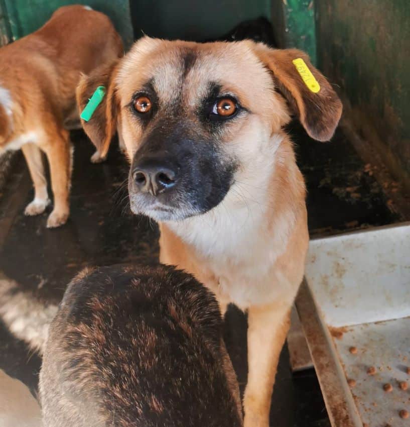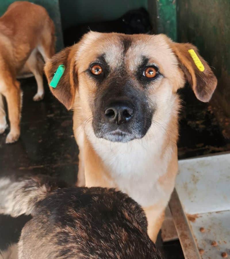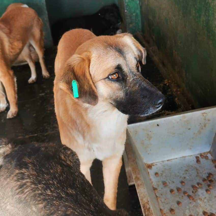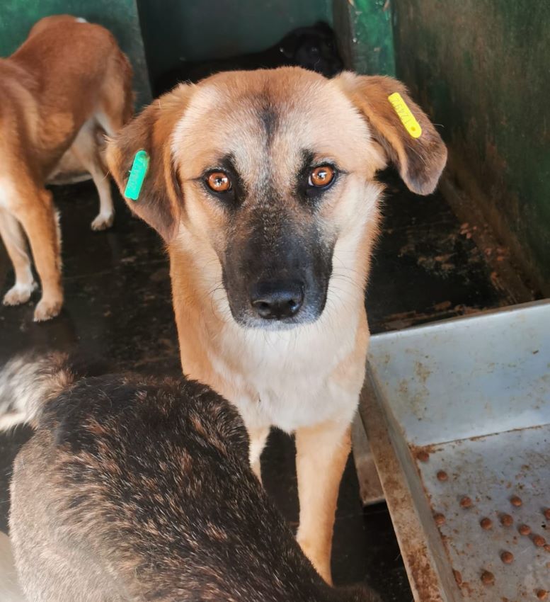 Dieser bezaubernde junge Rüde ist sicher noch nicht lange in Bucov und muss jetzt im dunklen Vetkennel ausharren. Als wir den Kennel betraten, hielt er sich überwiegend im Hintergrund auf und wartet geduldig, bis er an der Reihe war. Er nahm unsere Leckerchen aus der Hand und war dabei vorsichtig anfassbar. Zu mehr fehlte ihm in dieser Situation der Mut. Wir hoffen, dass er bald die Aufmerksamkeit bekommt, die er verdient, und dieser schwierigen Situation entkommen kann.