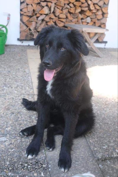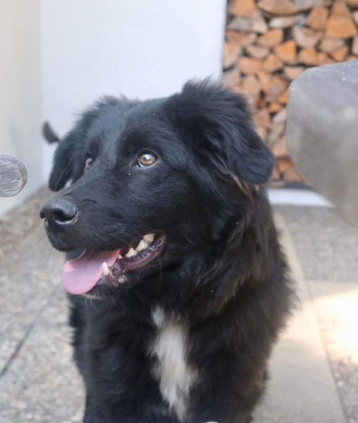 Fremden Menschen und Gästen begegnet er sehr aufgeschlossen und interessiert und lässt sich nach kurzem Kennenlernen bereits streicheln, v.a. wenn es Leckerchen gibt