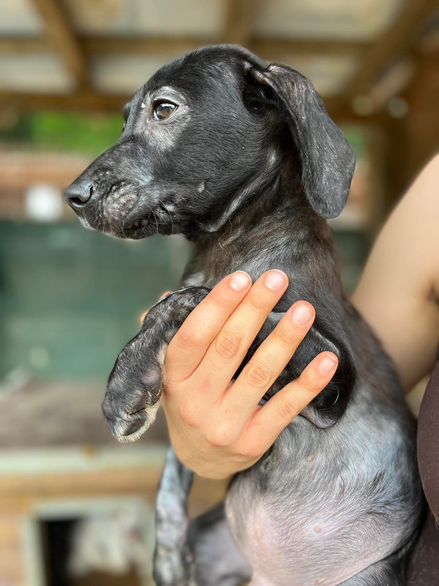 Rüde geb. ca. Ende Januar 2022 Größe: wird ca. mittelgroß durchtrittig, Hautprobleme (Ende 05 2022)