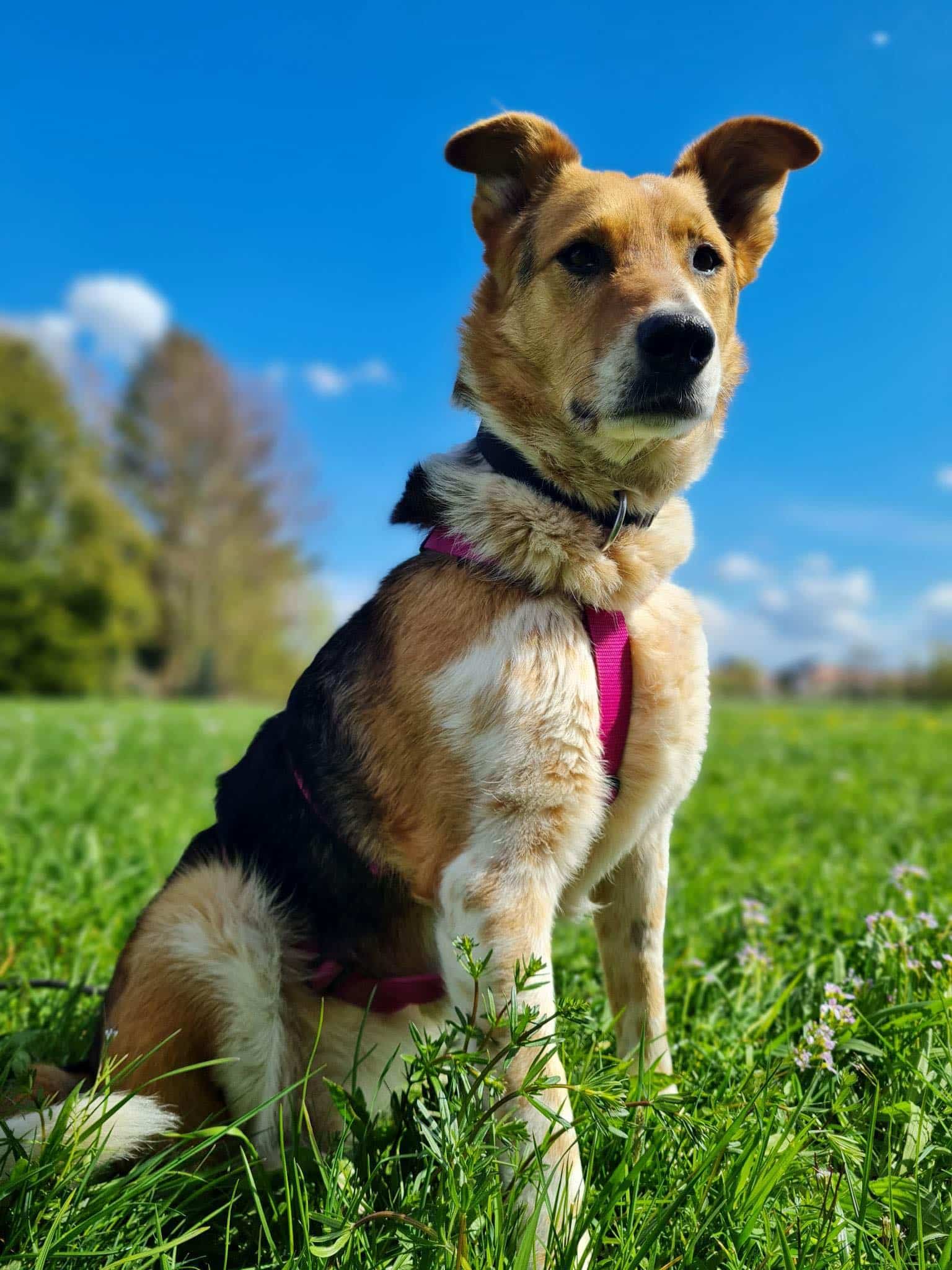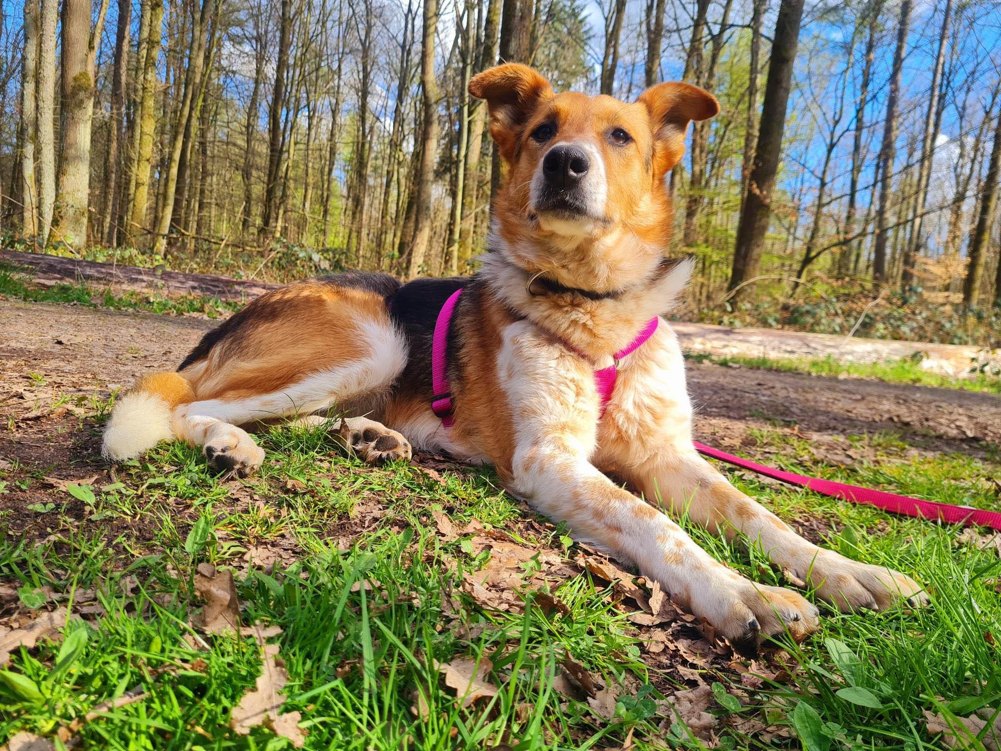 Emilia kam nach mindestens einem Jahr im rumänischen Tierheim im Februar 2023 auf ihre Pflegestelle in Groß-Zimmern. Sie war von Beginn an stubenrein, lernte sehr schnell an der Leine zu laufen, hat sich generell gut in den Alltag integriert und hat ein ganz tolles Wesen.