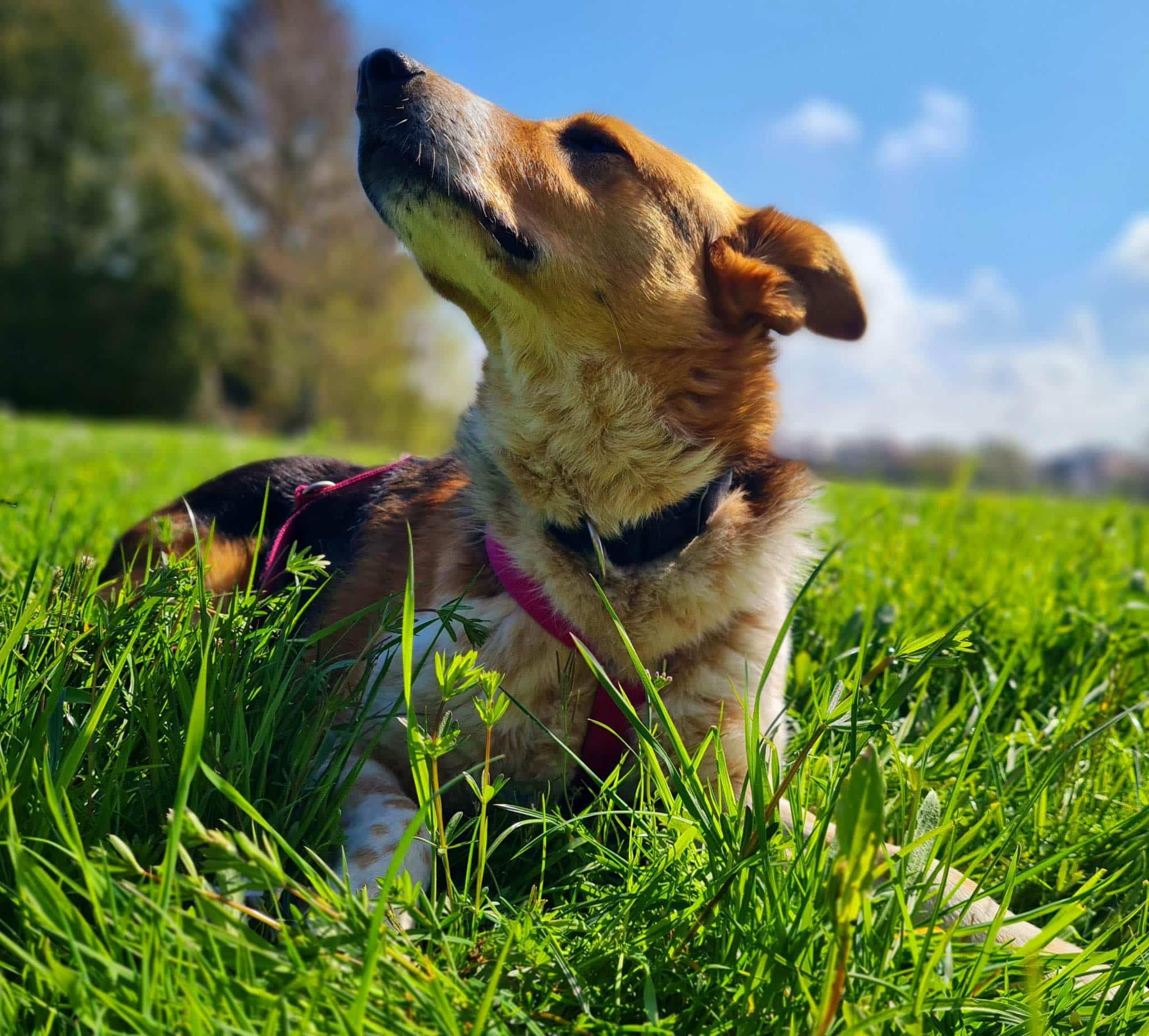 Draußen geht sie schön an der Leine, ohne zu ziehen, sie ist umweltsicher und auch Hundebegegnungen verlaufen problemlos. Mit ihr kann man gemütlich durch die Natur wandern, sie ist keine Sportskanone, die besonders ausgelastet oder gefordert werden will – sie hat sowohl drinnen als auch draußen insgesamt ein sehr genügsames, angenehmes Wesen.