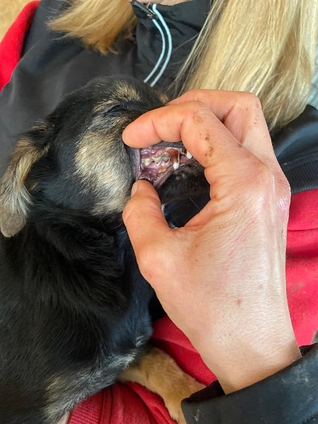 Hündin bleibt klein (ca. 20 cm Stand 11/24) geb. ca. Januar 2024 Hat Staupe überlebt – Staupegebiss / leichter Unterbiss