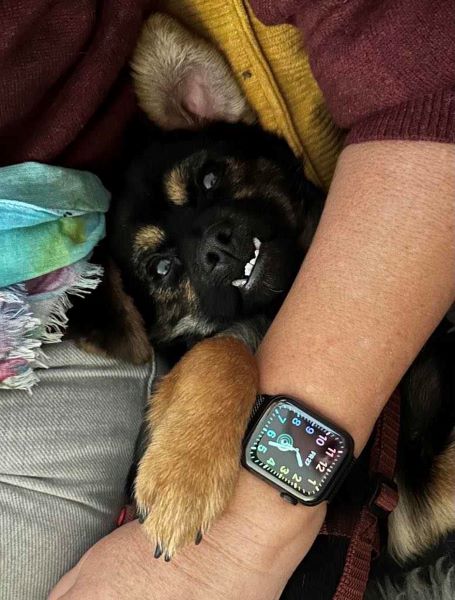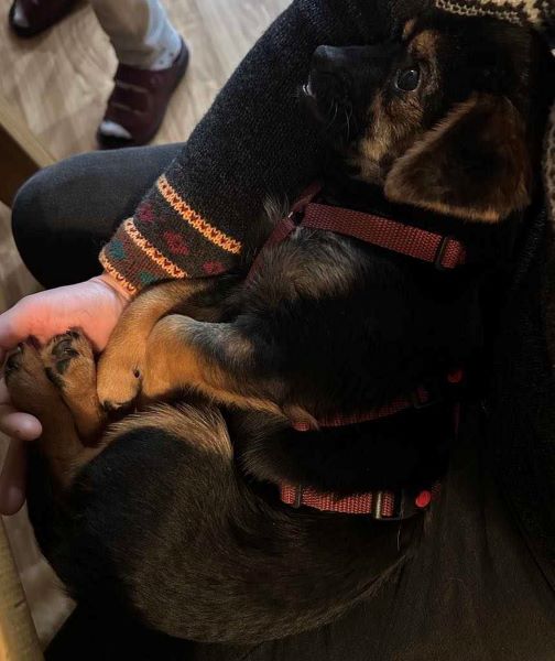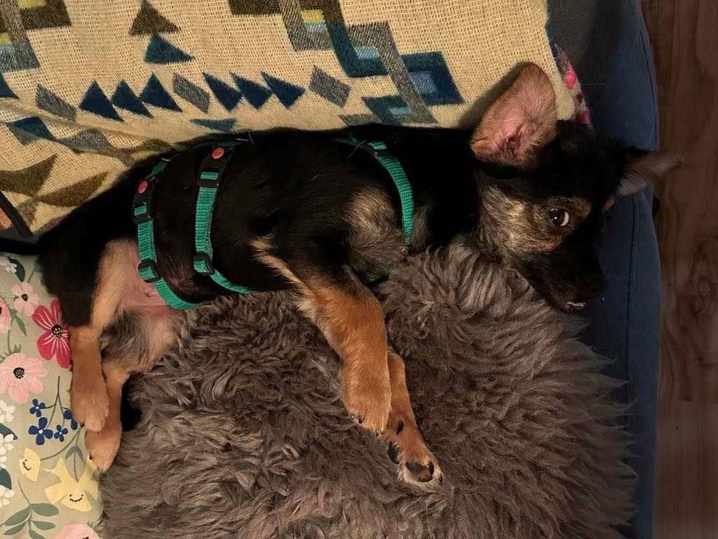 Sie liebt es im Garten mit Hundekumpels zu toben, im Haus fährt sie allerdings gut runter und schläft sehr viel. Sie ist bisher mit allen Hunden verträglich. Bei fremden Hundebegegnungen aber erstmal zurückhaltend, was bei ihrer „Größe“ auch nachvollziehbar ist. Sie läuft super an der Leine und lernt gerade die Grundkommandos. Abrufbar ist sie allerdings noch nicht – dieses findet sie überflüssig allerdings hat sich auch das, mit der richtigen Bestechung, schon ordentlich verbessert. Dafür fährt sie vorbildlich im Auto mit und bleibt stundenweise völlig entspannt mit ihren Hundekumpels alleine ohne etwas kaputt zu machen.