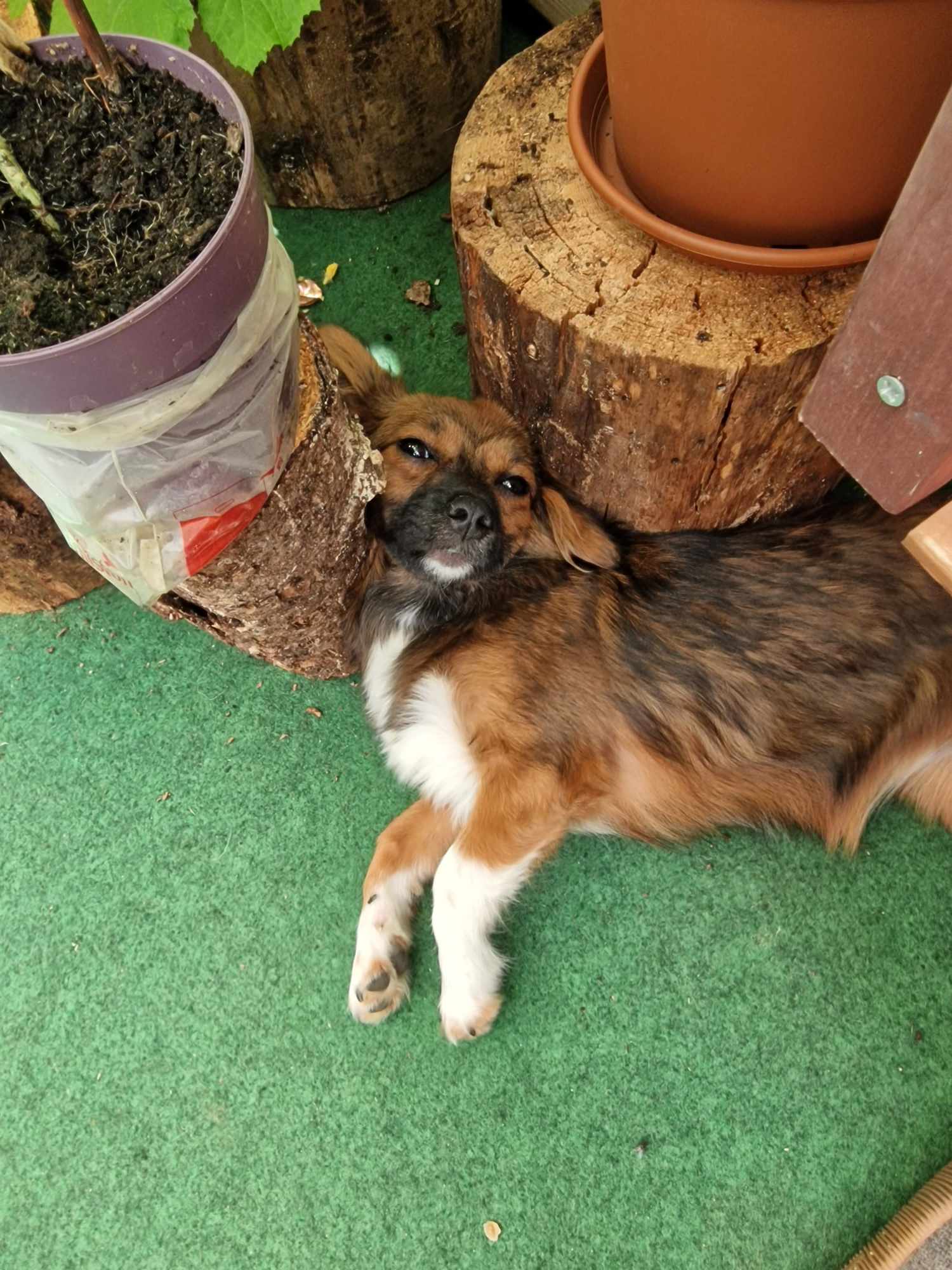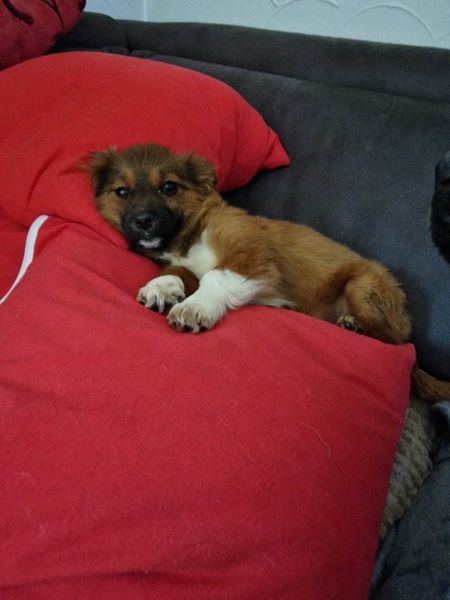 Ein Sofahund bin ich aber nicht! Ich bin für mein Leben gerne draußen, spiele und tobe gern, egal ob mit Mensch oder Hund. Ich finde alle toll. In Theorie auch die Katze, aber die findet mich doof. Versteh ich nicht, ich bin doch so süß?! Aber naja, Katzen sind halt eigen, hab ich mir sagen lassen. Ich kenne auch Kinder. Habe ich ebenfalls für gut befunden und auch mit den kleinen Menschen spiele ich gern, die sind ja sowieso eher meine Größenordnung. Autofahren wird mit mir täglich geübt, das finde ich nämlich noch ein bisschen komisch, aber in Rumänien verbinden wir Hunde meist nichts Gutes mit den rollenden Kästen. Fremden gegenüber bin ich erst ein wenig skeptisch, man weiß ja nie. Vorsicht ist besser als Nachsicht und ich bin ja auch nicht sonderlich groß. Deswegen belle ich lieber erstmal und beäuge Besuch aus sicherer Distanz. Wenn ich aber ein wenig Zeit bekomme, dann taue ich auf und kuschle für mein Leben gerne.