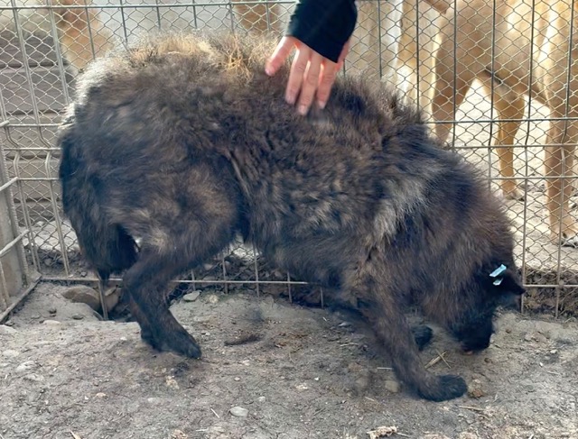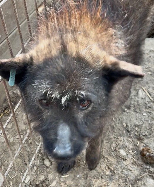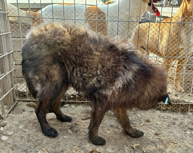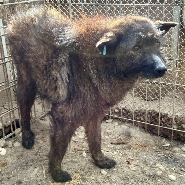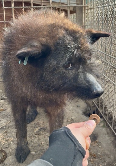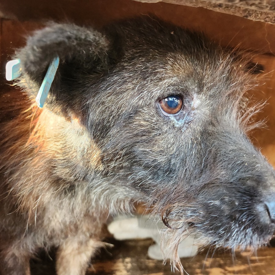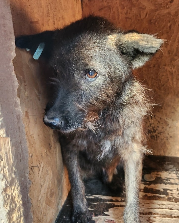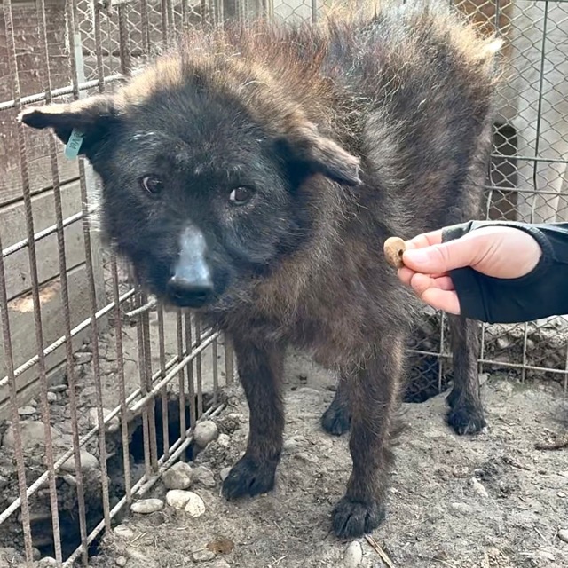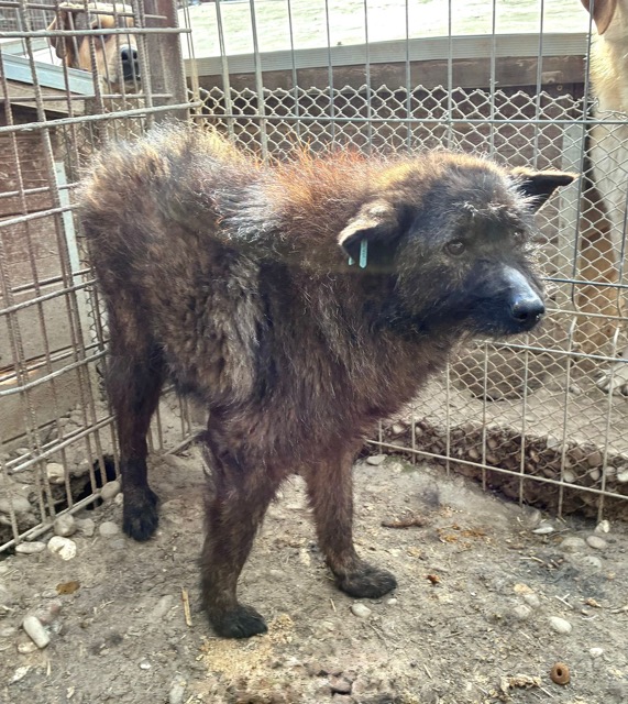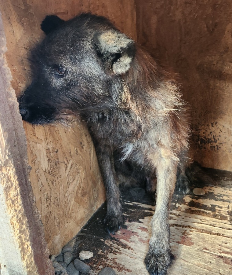 Der zarte Senior EMMO lag während dieses Besuchs wieder in seiner sicheren Hütte. Der Stress und Lärm des riesigen Shelters scheinen dem armen Hundemann zu schaffen zu machen. Resigniert lag er dort, eingerollt und wollte uns nicht einmal anschauen. Die mitgebrachten Leckerlie weckten ein paar Lebensgeister und er fraß sie von Boden. Behutsam konnten wir EMMO zunächst in der Hütte und schließlich auch in einer Ecke des Kennels berühren, doch er scheint Nähe und Zuwendung überhaupt nicht zu kennen. Wir wünschen dem sensiblen Kerlchen, dass er von erfahrenen und einfühlsamen Menschen gesehen wird, die ihm auf der Sonnenseite einen würdigen Lebensabend ohne Sorgen und große Anforderungen bereiten. Damit dieser trostlose Ort nicht EMMOs Endstation ist. Wir konnten zwar keine Interaktion mit den anderen Hunden beobachten, schätzen ihn aber verträglich ein und denken, dass er sich über ruhige und angenehme Hundegesellschaft in seiner neuen Umgebung freuen würde.