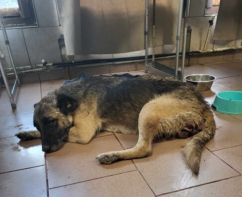 Die ältere Enja wird aktuell aufgrund eines großen Sticker Tumors behandelt. Ihr Körper ist ziemlich gezeichnet von den Strapazen. Was sie bisher alles mitmachen musste, wissen wir nicht. Enja wirkt extrem müde und schlapp. Sie ist ist anfassbar und verträglich. Nach der Behandlung benötigen wir dringend einen Platz für sie.