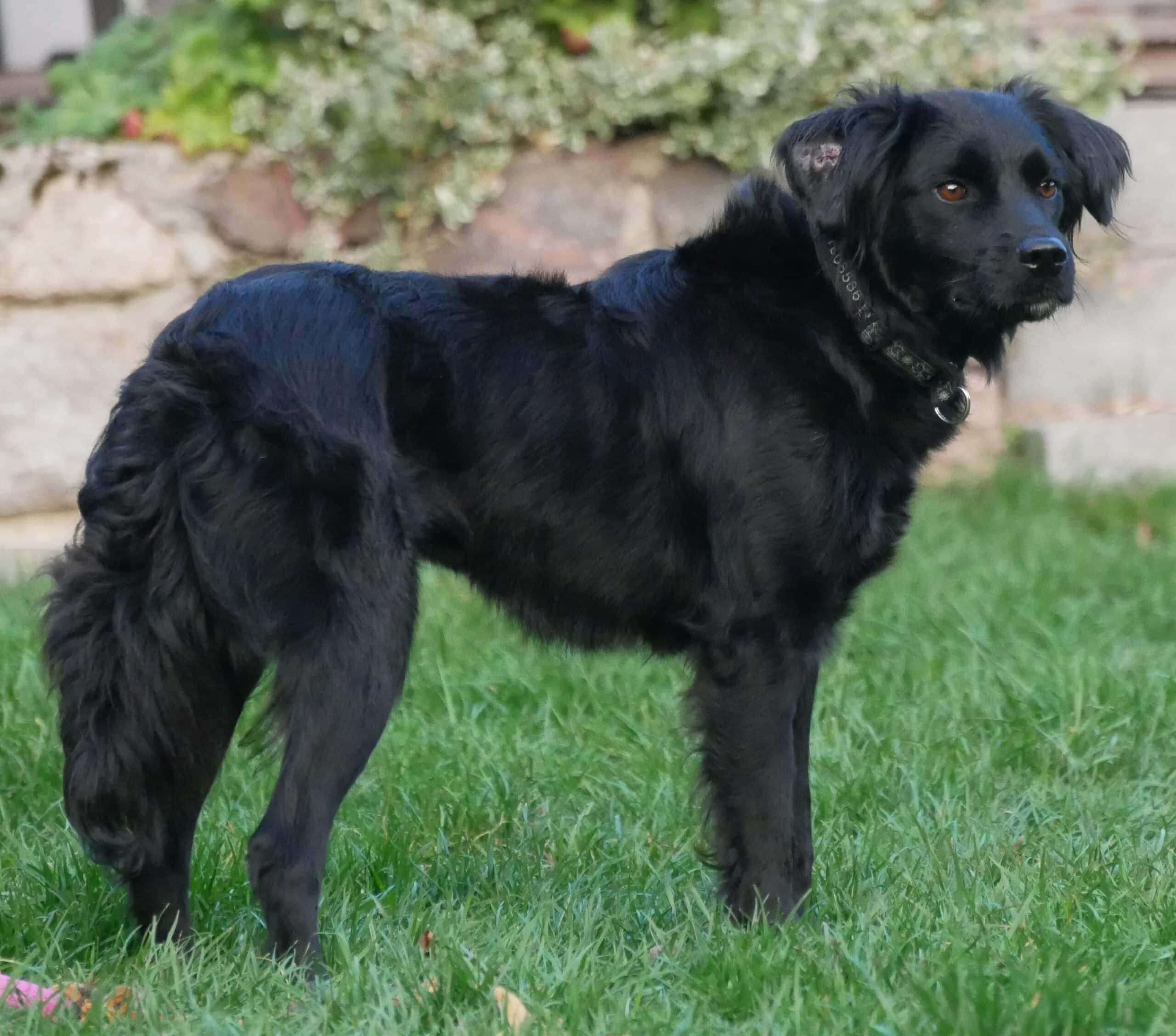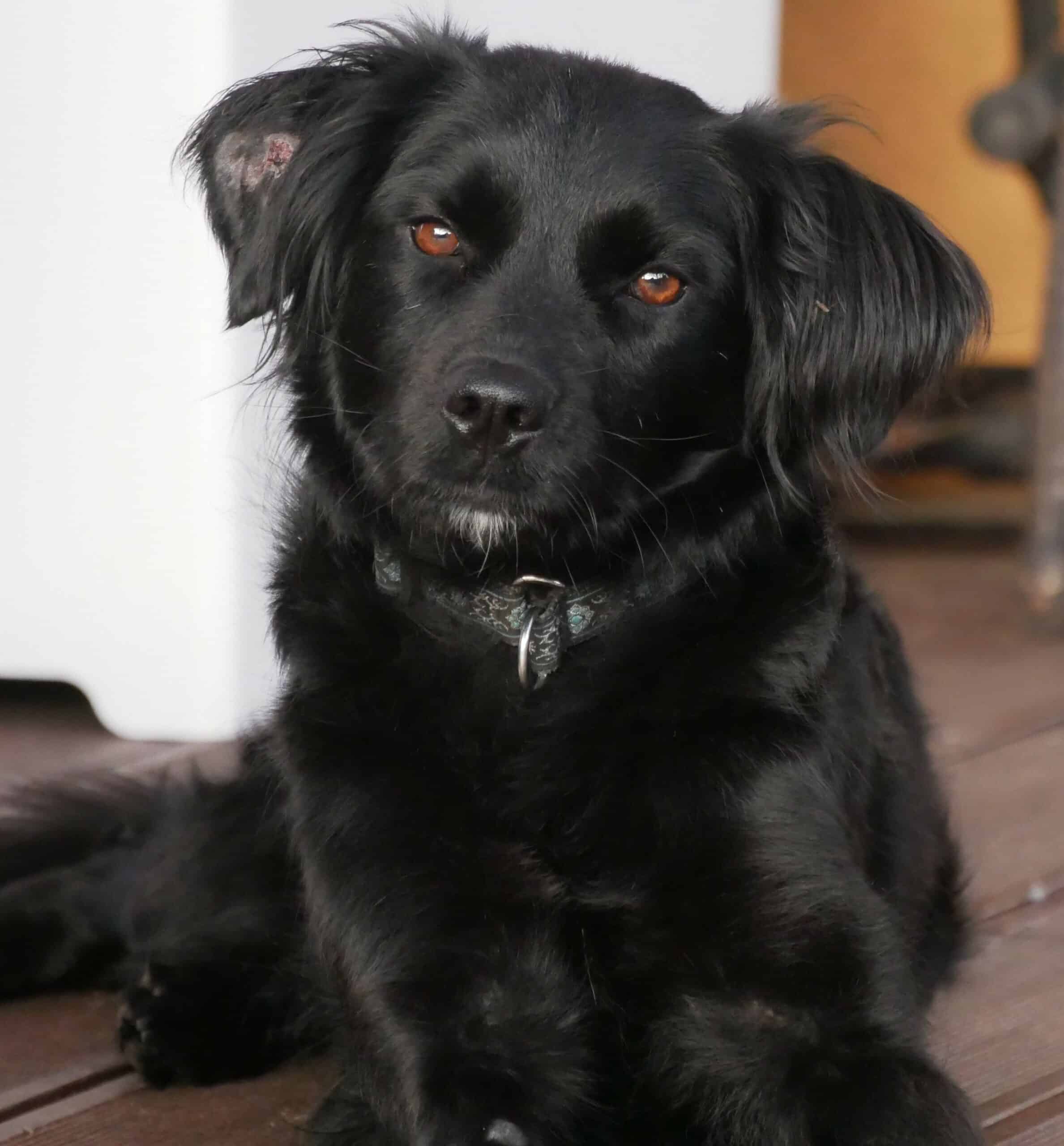 Sehr freundlich, verträglich mit Artgenossen und mit Katzen, im Haus eher ruhig, im Garten wird gerne getobt. Spazierengehen klappt prima, sie zeigt an, wenn sie raus muss, sie schläft durch, ist im Büro ein angenehmer Begleiter.