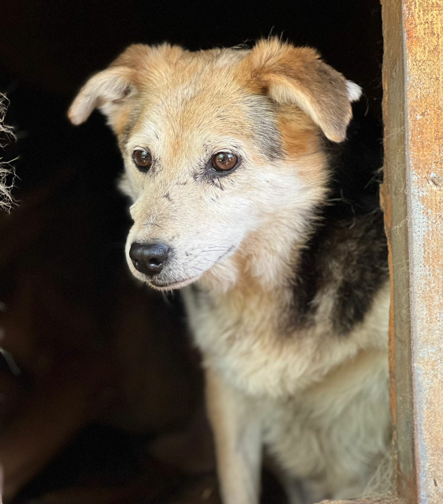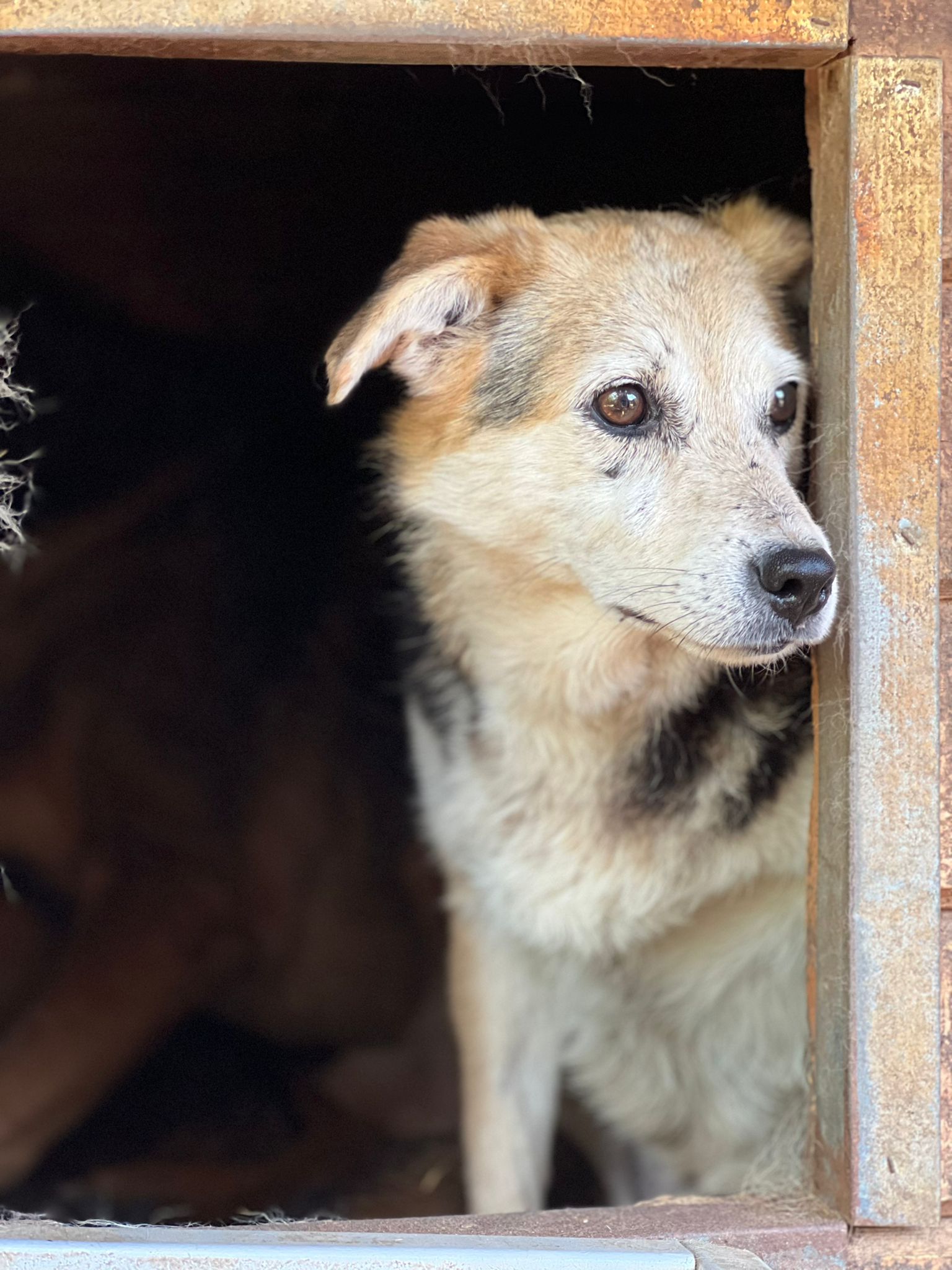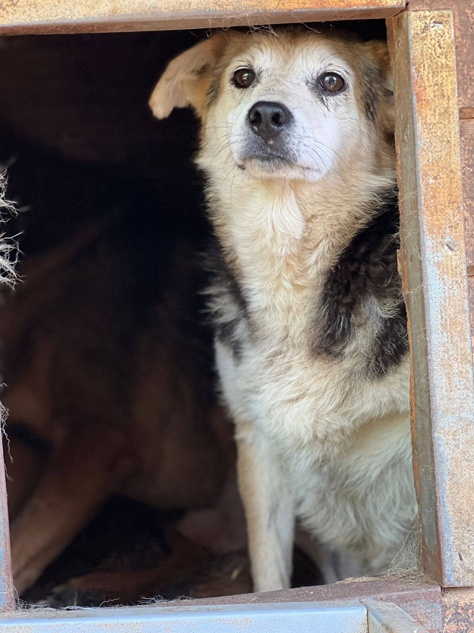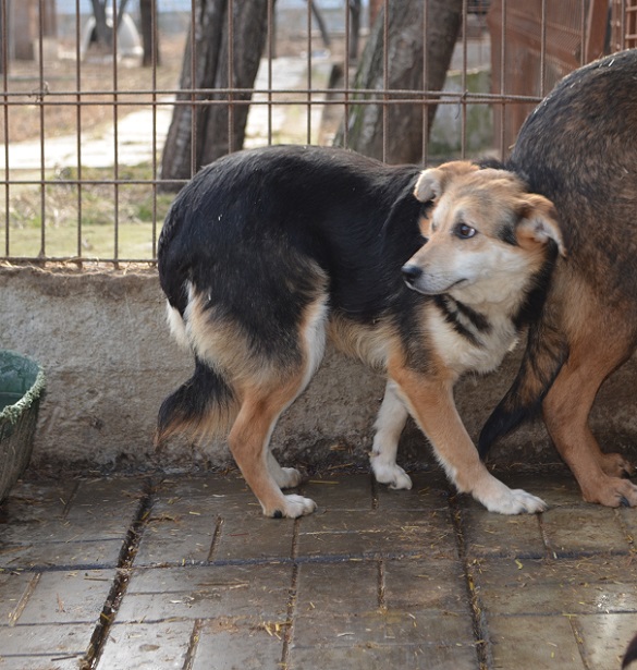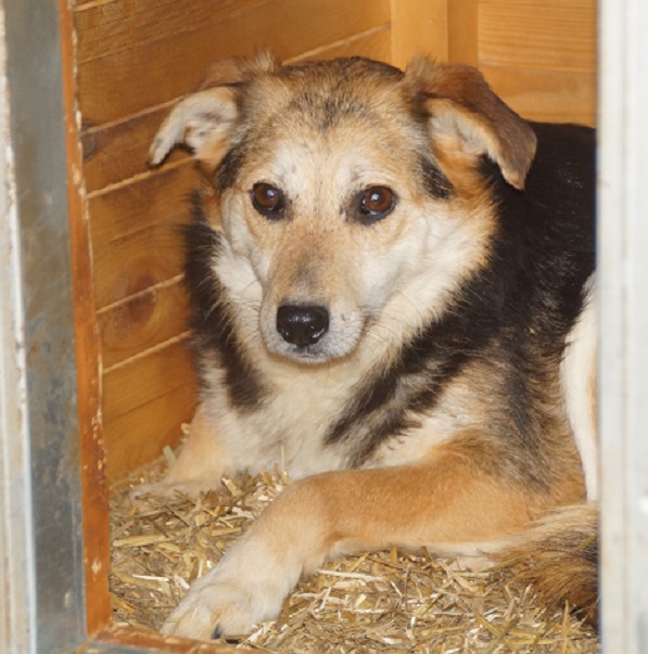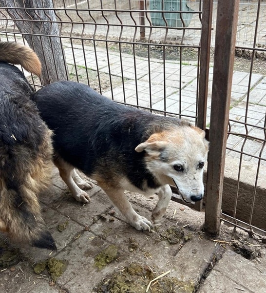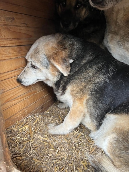ENNA fand uns ziemlich gruselig und suchte Schutz zwischen den anderen Hunden, an denen sie sich stark orientierte. Sie bräuchte definitiv mindestens einen souveränen Ersthund. Wir würden uns wünschen, dass sie in anderer Umgebung ihren Lebensabend behutsam verbringen darf.
