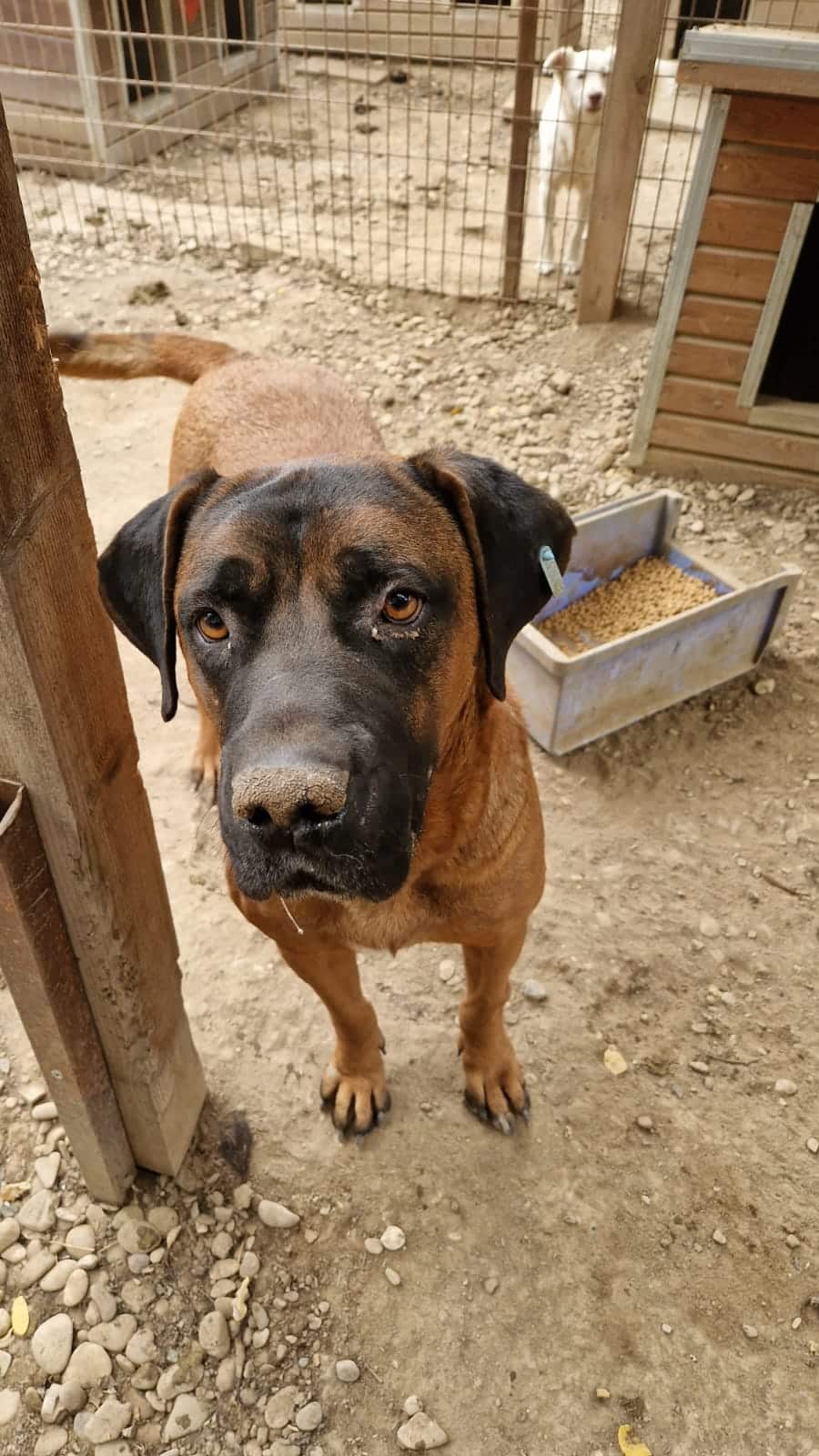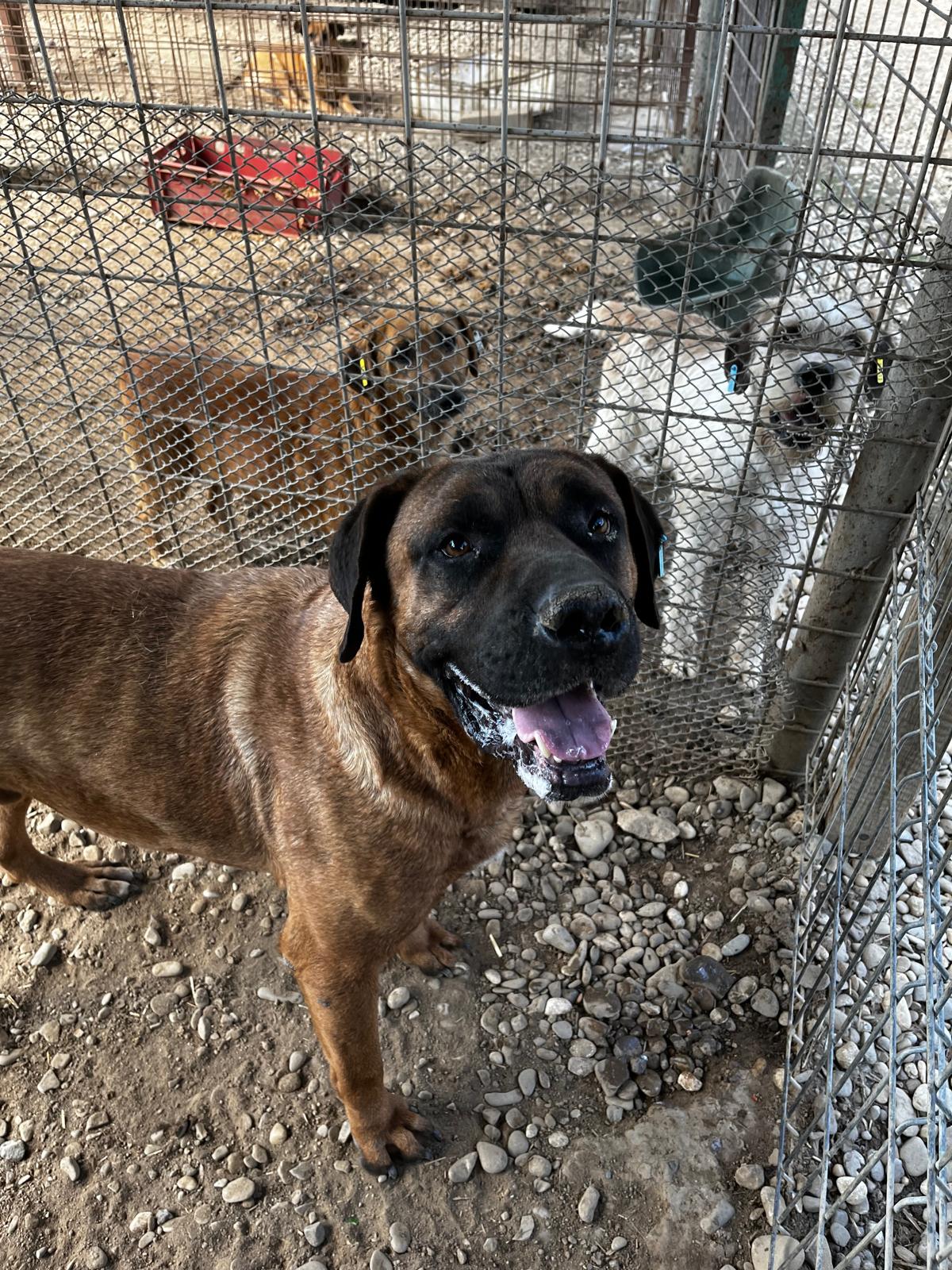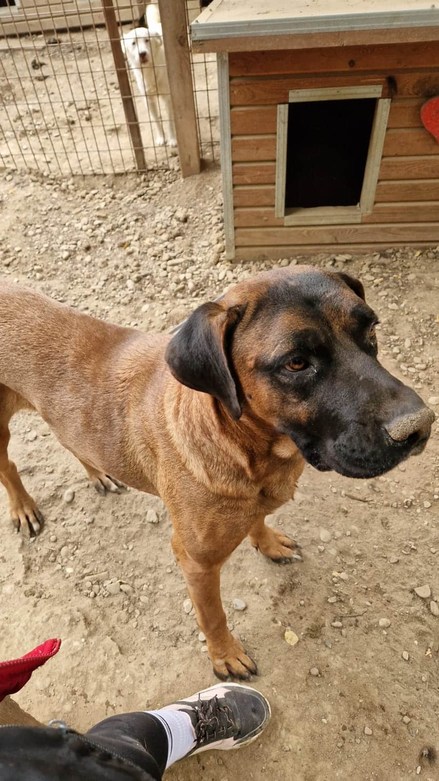 Er teilt sich den Kennel inzwischen mit zwei weiteren großen Rüden und das funktioniert augenscheinlich gut. Er ist ein toller Junge, der hoffentlich nochmal eine Chance bekommt