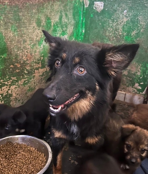ERNA wurde gemeinsam mit mehreren Welpen im Tierheim abgegeben. Sie kümmert sich liebevoll und fürsorglich um jeden einzelnen. Dabei beobachtet sie stets aufmerksam, was mit den Kleinen geschieht und sorgt sich rührend um ihr Wohlergehen.