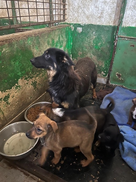 Erna ist eine zauberhafte Hundemami die aktuell ihre Welpen groß zieht. Sie lebte bis vor kurzem in einem Außenkennel mit der Bande, dieser wurde abgerissen und erneuert, sodass sie für kurze Zeit in die freie Box im Vetkennel umziehen mussten. Sie lässt sich gerne anfassen und man kann ihr ansehen, wie anstrengend ist die Kleinen großzuziehen. Sie ist freundlich und offen und ließ sich gut anfassen. Bald sind ihre Welpen alt genug und suchen alle ein neues Zuhause wie ihre liebevolle Mutter. Die Welpen wurden noch nicht erfasst, da sie aktuell noch zu jung sind und erst einmal die Impfphase überstehen müssen. Die Welpensterblichkeitsrate ist unter diesen Bedingungen leider hoch. Über die Verträglichkeit mit anderen Hunden können wir keine Aussage treffen da sie ausschließlich alleine mit ihren Welpen zusammen lebt.