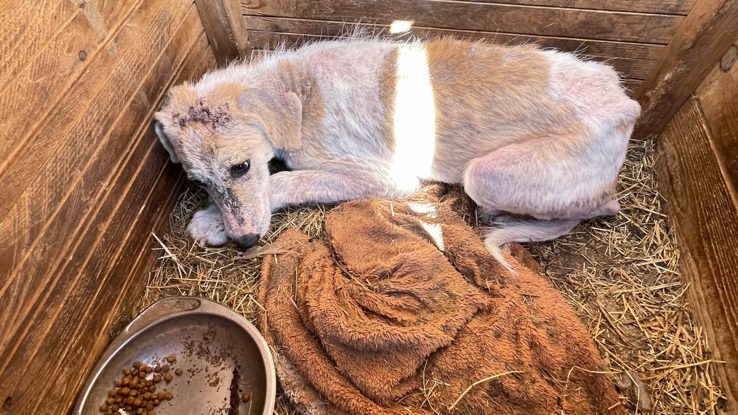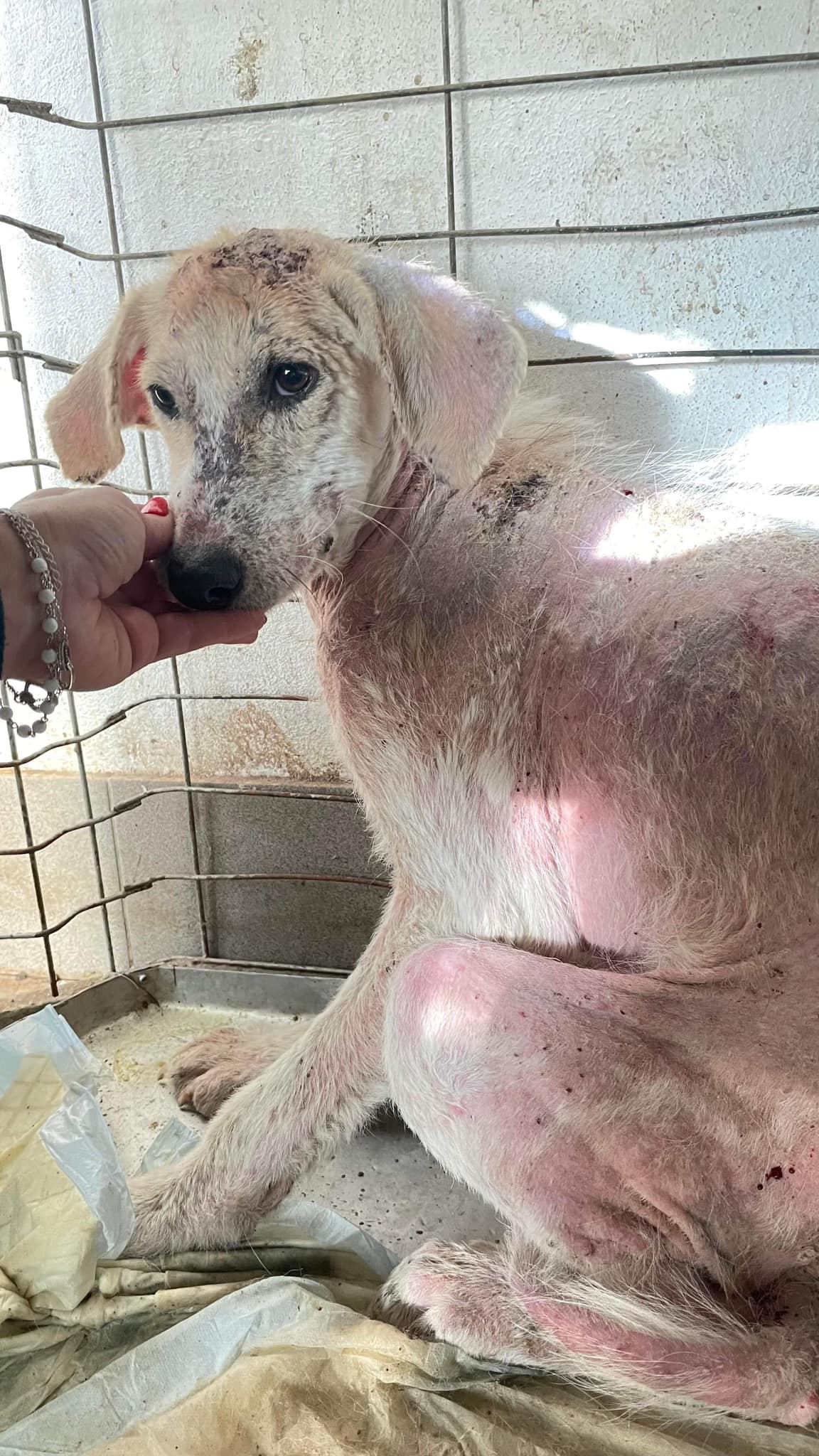 ERNI wird nun behandelt und sitzt nun im warmen Vethouse. Es wird nun aktuell gegen die Demodikose behandelt, danach freuen wir uns, wenn sie ein Plätzchen finden könnte. Bis dahin freuen wir uns sehr, wenn wir Paten für sie finden, die uns bei seiner Versorgung finanziell helfen.