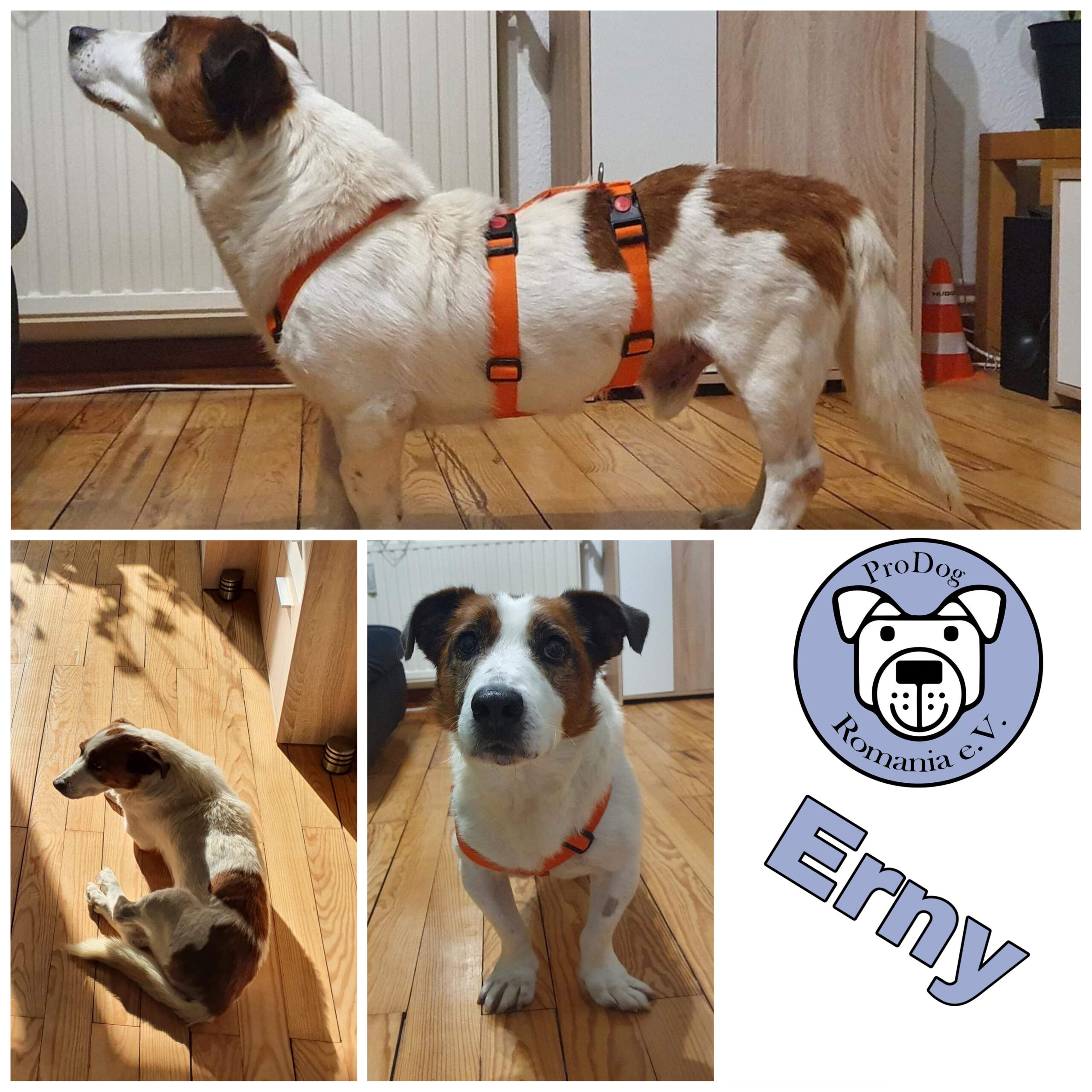 Hier ist der Erny und ich möchte euch gerne ein klein wenig über mich erzählen. Mitte Oktober bin ich zu meiner Pflegefamilie nach Deutschland gekommen. Hier lebe ich nun mit zwei weiteren Hundefreunden zusammen, mit denen ich mich auch super verstehe. Als ich hier ankam war ich abgemagert und übersät mit alten Wunden. In Rumänien musste ich schwer um mein Futter kämpfen. Ich war sehr unsicher, hatte Angst Treppen zu laufen und anfassen lassen wollte ich mich auch nicht. Mein Pflegefrauchen sagt, dass sie vermutet, dass ich früher wohl nicht so nett von Menschen behandelt wurde und erst vertrauen fassen musste. Aber nun bin ich sowas von aufgeblüht als hätte ich einen zweiten Frühling. Es gibt nichts schöneres für mich als mir meine Streicheleinheiten einzuholen und ich erinner die Zweibeiner auch regelmäßig daran, dass es nun wieder an der Zeit ist.