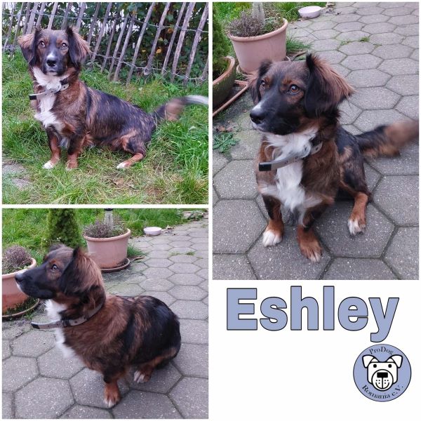 Bei Hunden ist sie nicht so schüchtern, ganz im Gegenteil. Sie möchte alle kennenlernen. Eshley ist ein Hund, der tatsächlich andere Hunde braucht, um glücklich zu sein, dann ist auch das Alleinebleiben nicht schlimm. Daher sehen wir sie nicht als Einzelhund.