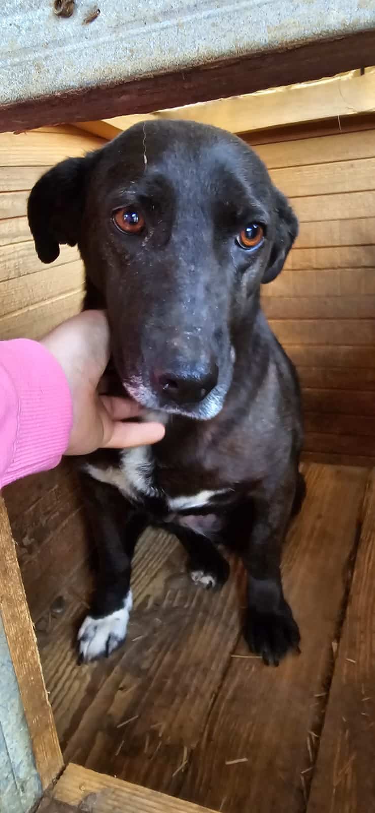Wir sind dann noch einmal zu ihr gegangen, bevor wir den Kennel verlassen haben. ESJE hat sich sofort auf die Seite gelegt und sich den Bauch streicheln lassen. Man spürt, dass der Stress in Bucov ihr zusetzt und sie in der schützenden Hütte einsam ihre Lebenszeit absitzt.
